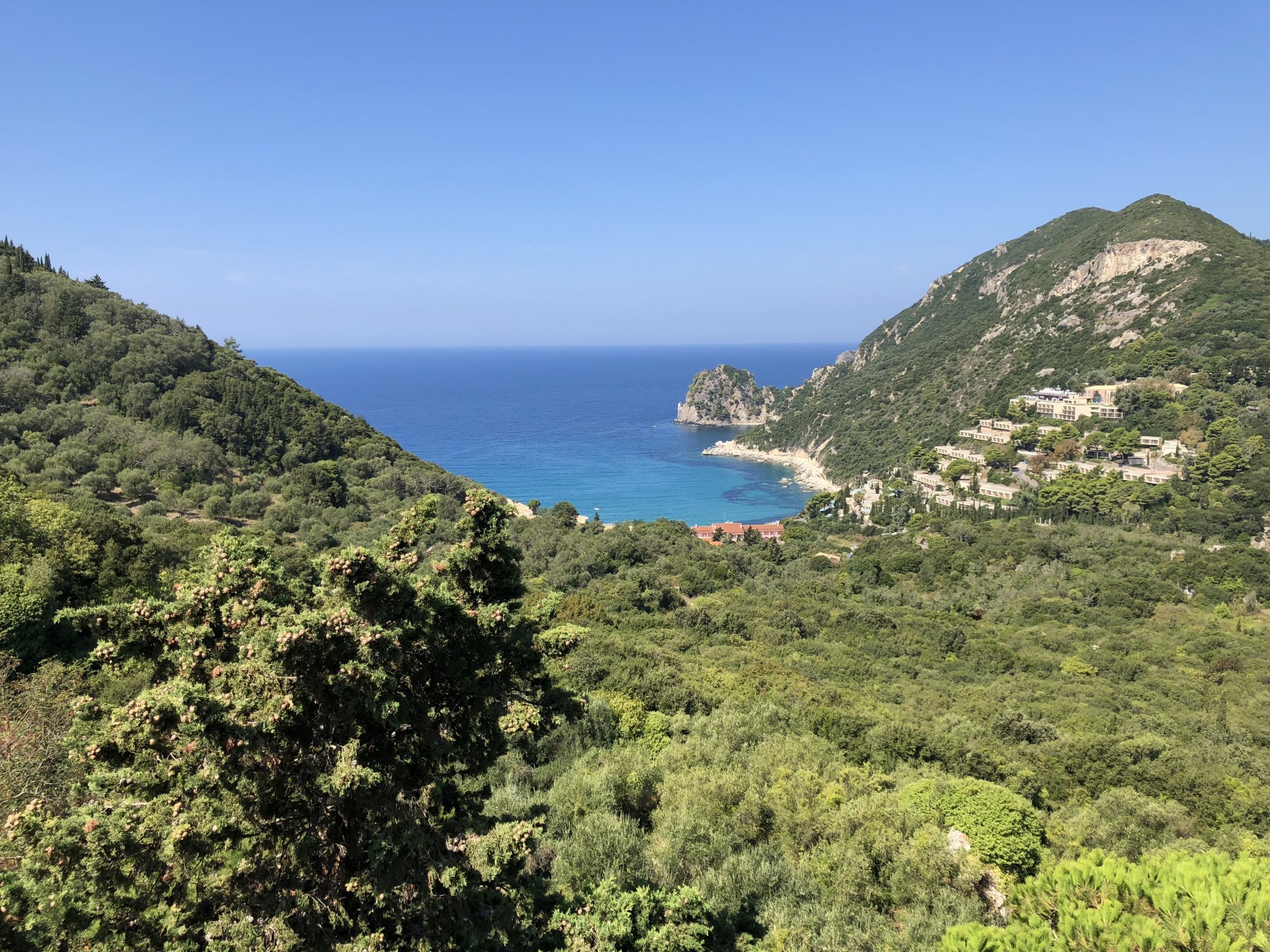 В момента сме в Корфу в една страхотна вила. Просто невероятна. Ето това е гледката от вилата. Вижда се от три от четирите спални и от трапезарията, дневната и кухнята. Искам да живея тук Wink