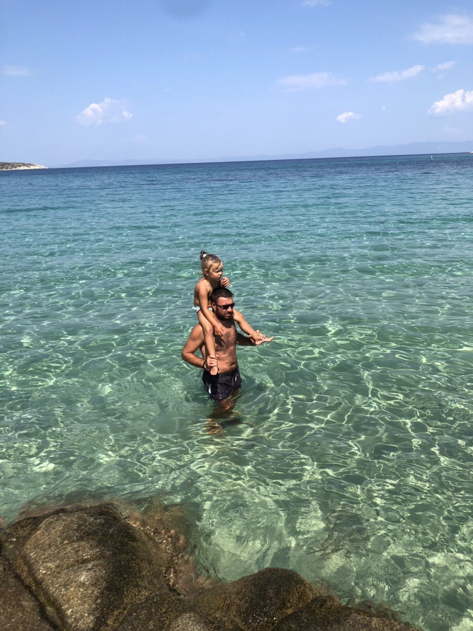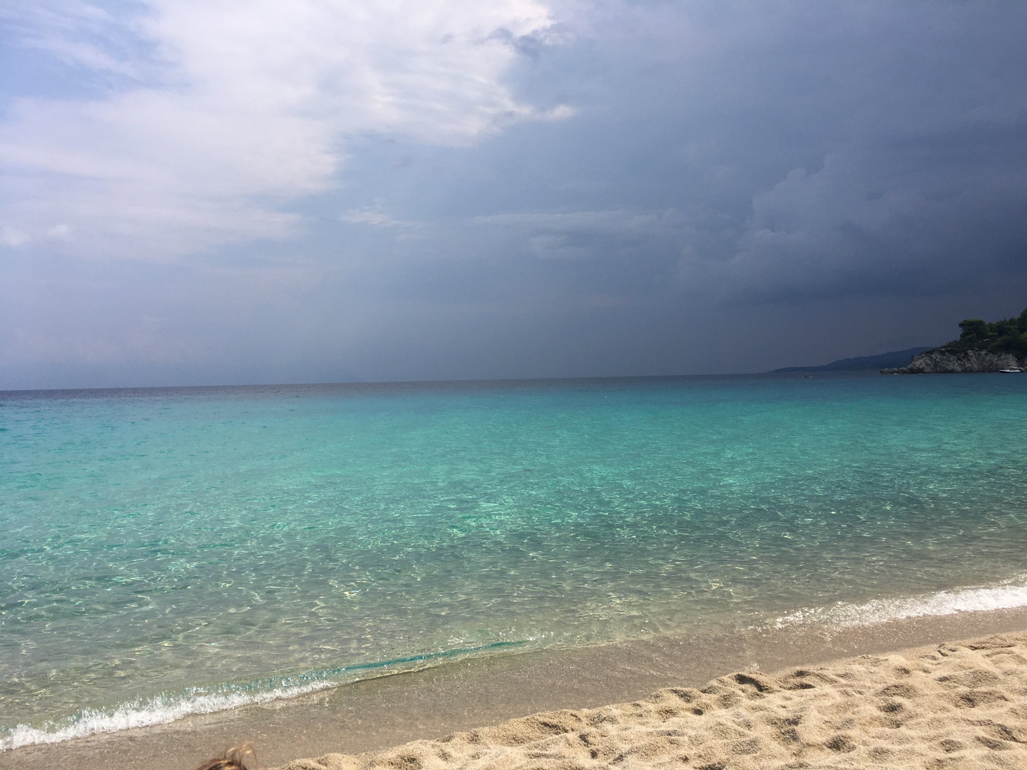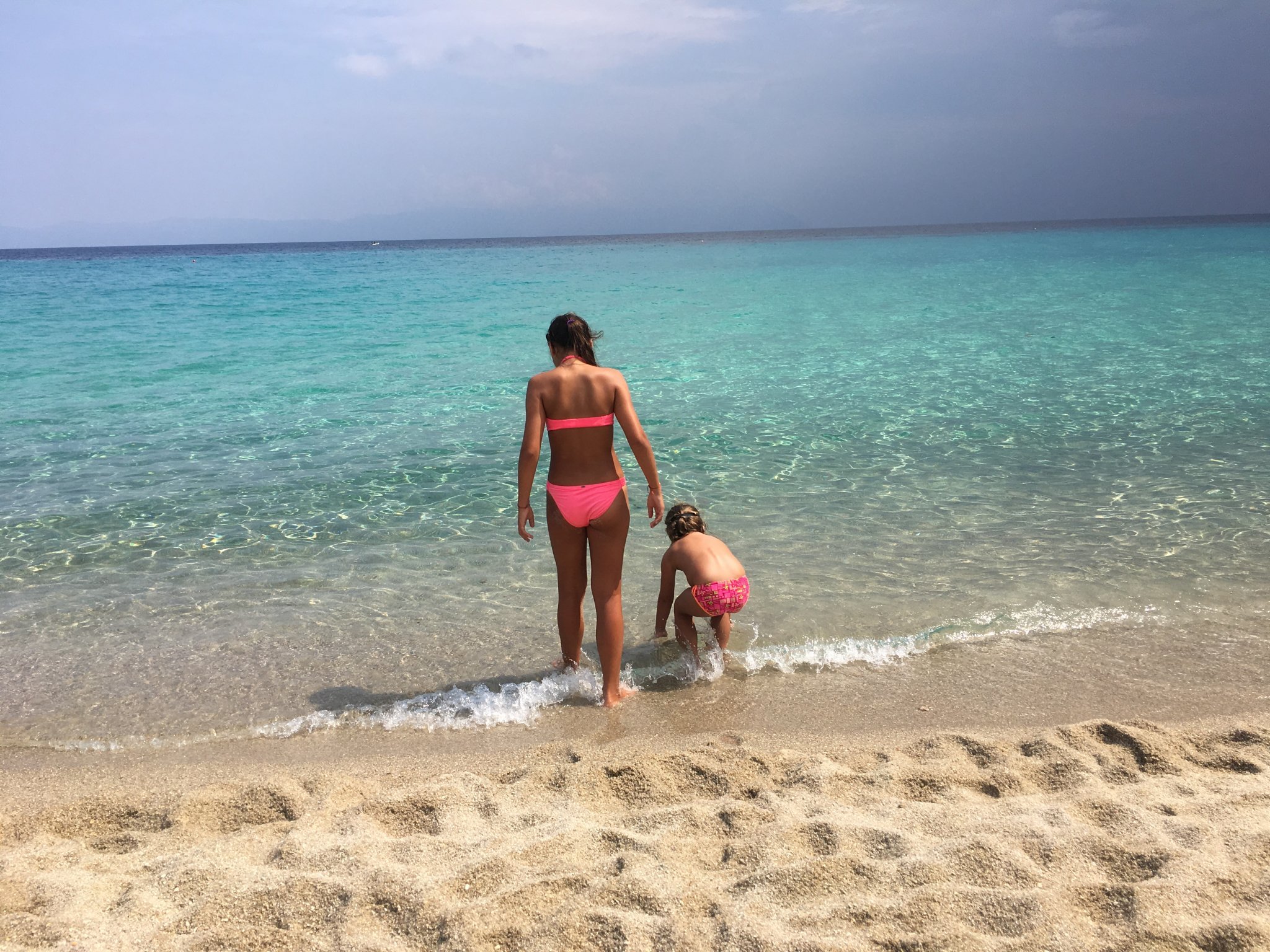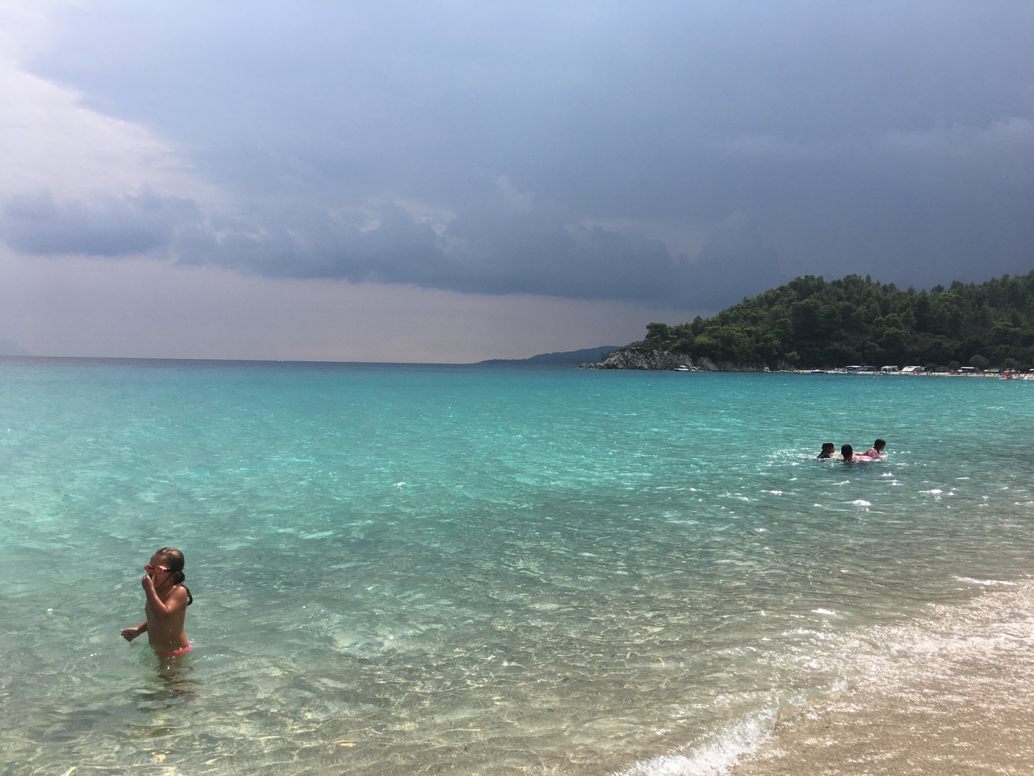 ден 2 - беше облачен и мрачен и решихме да не рискуваме и отидохме просто в най-дясната(долната) част пак на плаж Сарти - действително по-плитък,  но малко по-мътна вода (може и от времето да е било). Заваля ни на плажа по обед и се прибрахме