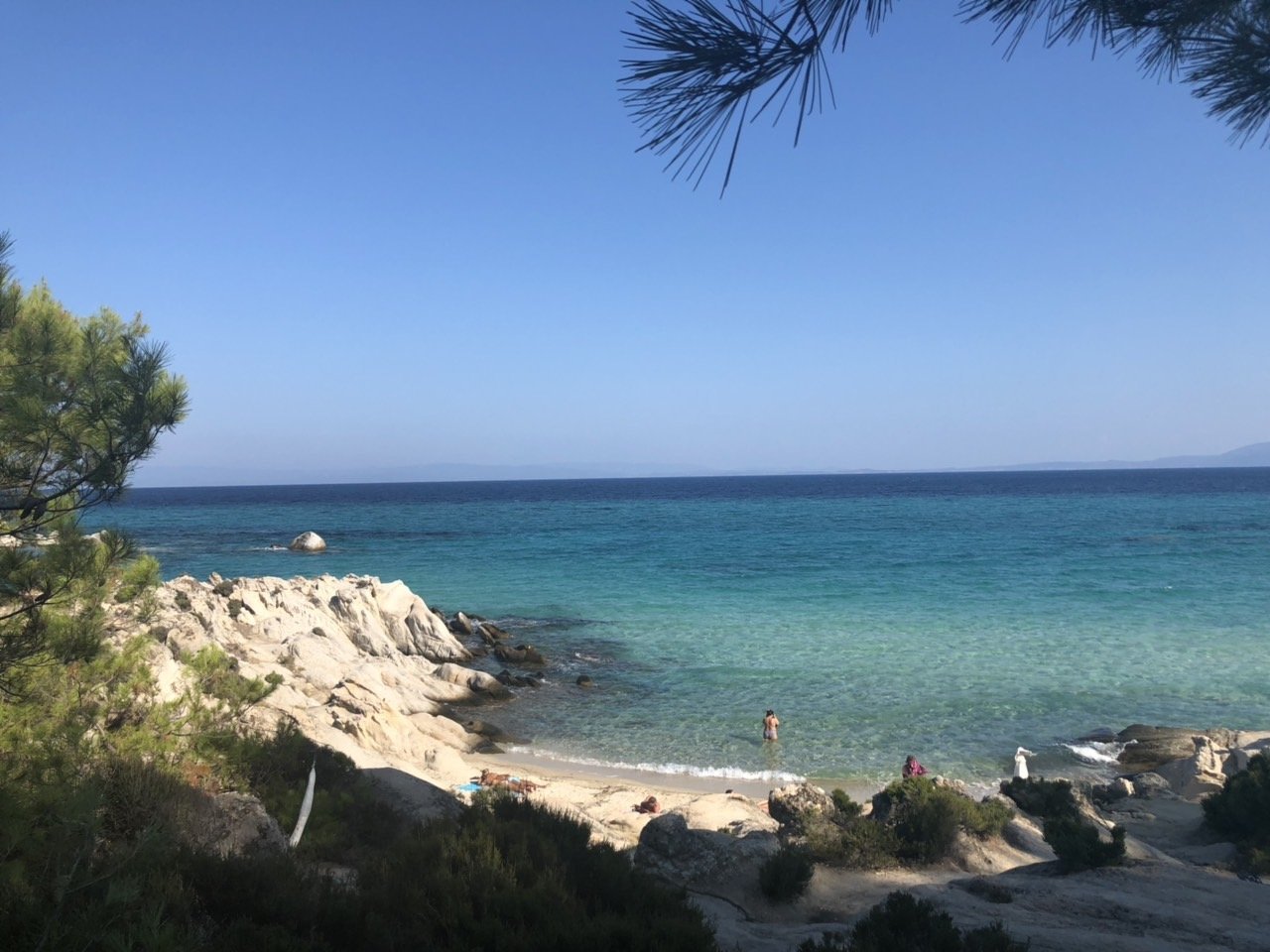 ден 7 - Криарици - след кошмара от лутането в предходния ден решихме да повторим пътя през лабиринта, понеже сме мазохисти. За наше очудване, много бързо и лесно се стига до него. Страхотен плаж, тихо, дълга широка ивица, с не мн ситен пясък, не мн плитко, но все пак добро за деца, чичста вода, два бийч бара (но напълно достатъчни), волейболно игрище, скали в двата края, страхотна гледка към Атон.... просто всичко, което може да еиска човек. В близост зад един скали мисля има и нуди плажче. Мн ни хареса на всички.