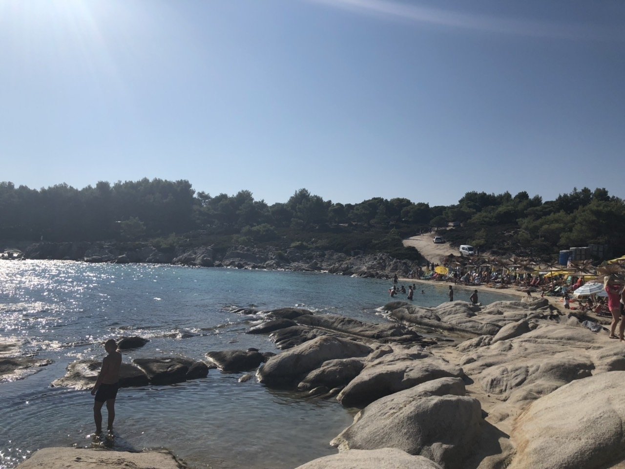 ден 8 - мислехме да тръгнем рано и да отидем до Кариди, но в крайна сметка решихме да наваксаме малко път сутринта по хладното и да направим последния плаж някъде по-близо до границата. На обяд бяхме вече на Амолофи и останахме там до вечерта, до нас имаше много българи, но все семейства с деца, и без тонколони Simple Smile