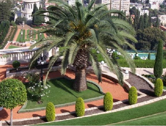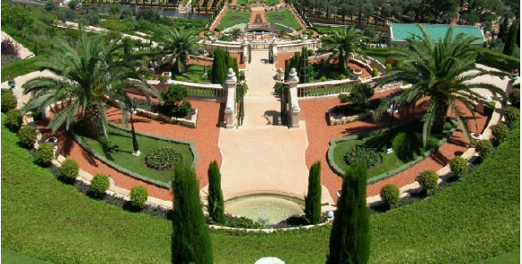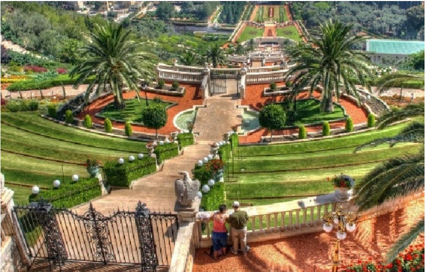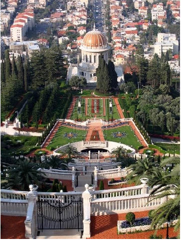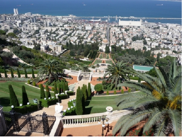 Градините се спускат по склона на хълма Кармел, от където се разкрива