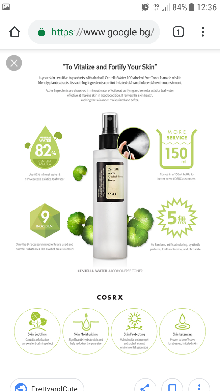 За тонера с центела на COSRX- това си е просто флорална вода (Centella Asiatica Leaf Water) с добавени малко успокояващи и хидратиращи съставки. Аз повече харесвам PURITO Centella Green Level Calming Toner, защото освен центелата (10% екстракт, а не флорална вода) има и хамемелис/witch hazel ,който е прекрасен за капиляри и свива порите, и нискомолекулна хиалуронова киселина.