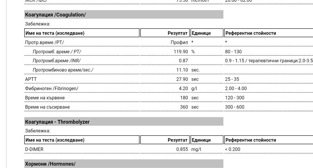 Показах отново резултатите на гинеколожката, показах написаното от Паскалева и беше на кантар за терапия. Ни така, ни иначе. Ако не изпише нищо, и се случи нещо - кофти, а да изпише нещо - то реално няма реално установена причина. В крайна сметка се разбрахме за Фраксипарин 0.3, но аз още съм на кантар и не мога да се реша. След 2 седмици съм при Сигридов и аз. Само Д-Димер и фибриноген не бях изследвала