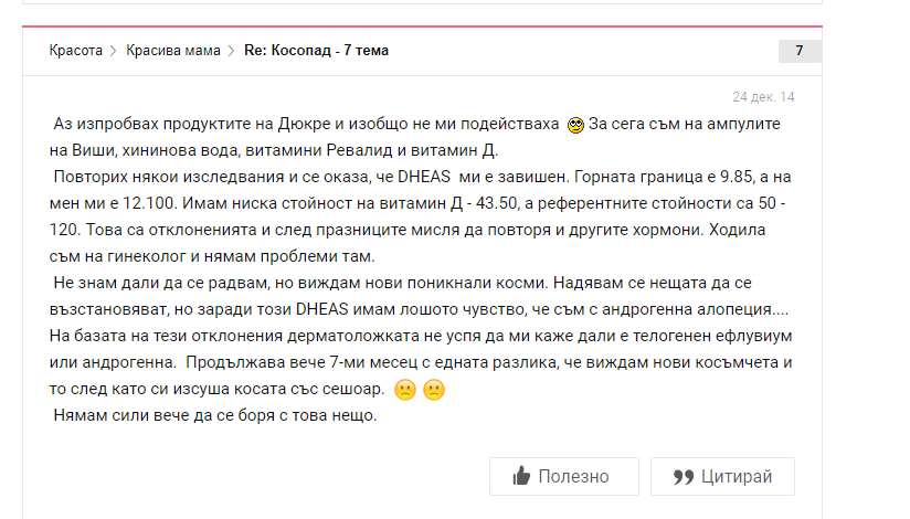 Когато ще дойде чудото някой да напише че му е намлял или приполовил този пусти косопад. И при мен е нещо подобно 80-90 на ден. +130при  къпане до пълно изсушаване на косата. Съгласна съм това за генетиката. Както при мъжете е от бащи и дядовци, по същия начин е при жените- майки и баби. Честно, бих била доволна и до 55г. да изкарам с коса пък после.... какво дойде ама на 31 много мине рано.