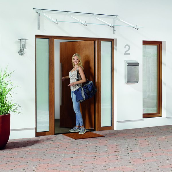Изгодната алтернатива на алуминиевите външни врати е външната врата Thermo65 – комбинация от стоманено платно и алуминиева каса. Платното с дебелина 65 мм предлага добра топлоизолация и се грижи студът да остане навън. Със секретната брава със заключване в пет точки може да се чувствате защитени и в безопасност у дома. Стандартно вратата е със защита срещу взлом RC 2, което означава, че тя трябва да издържи минимум 3 минути на опит за взлом, при който случаен извършител се опитва да разбие вратата с прости ръчни инструменти като отвертка, клещи и клин.