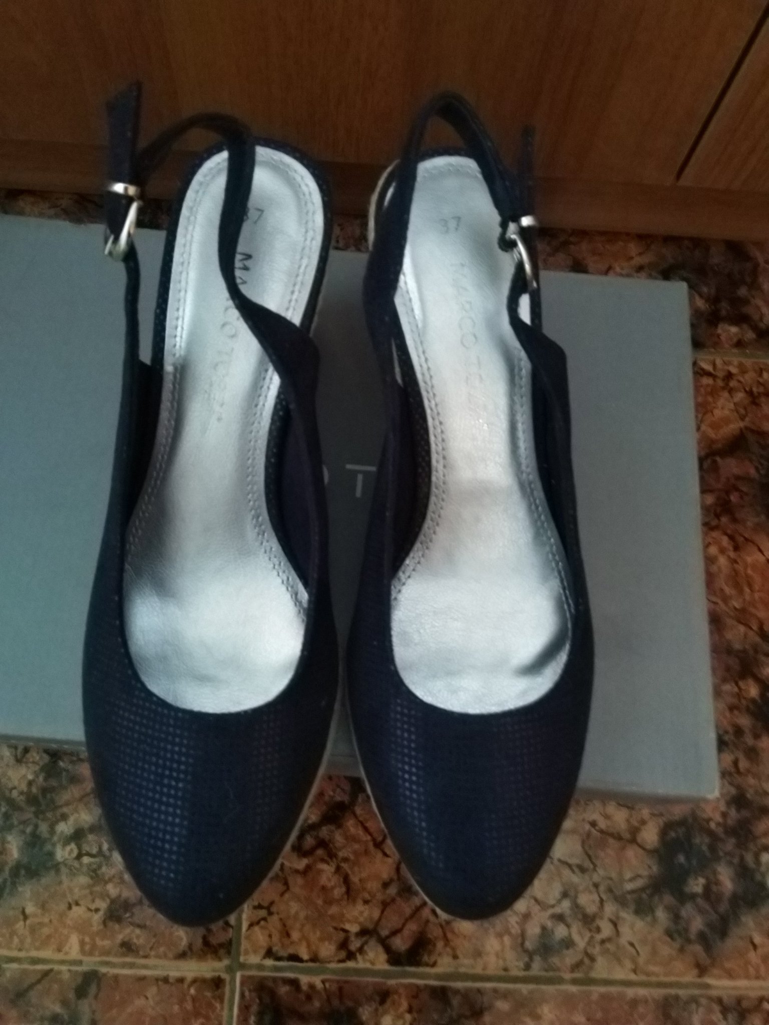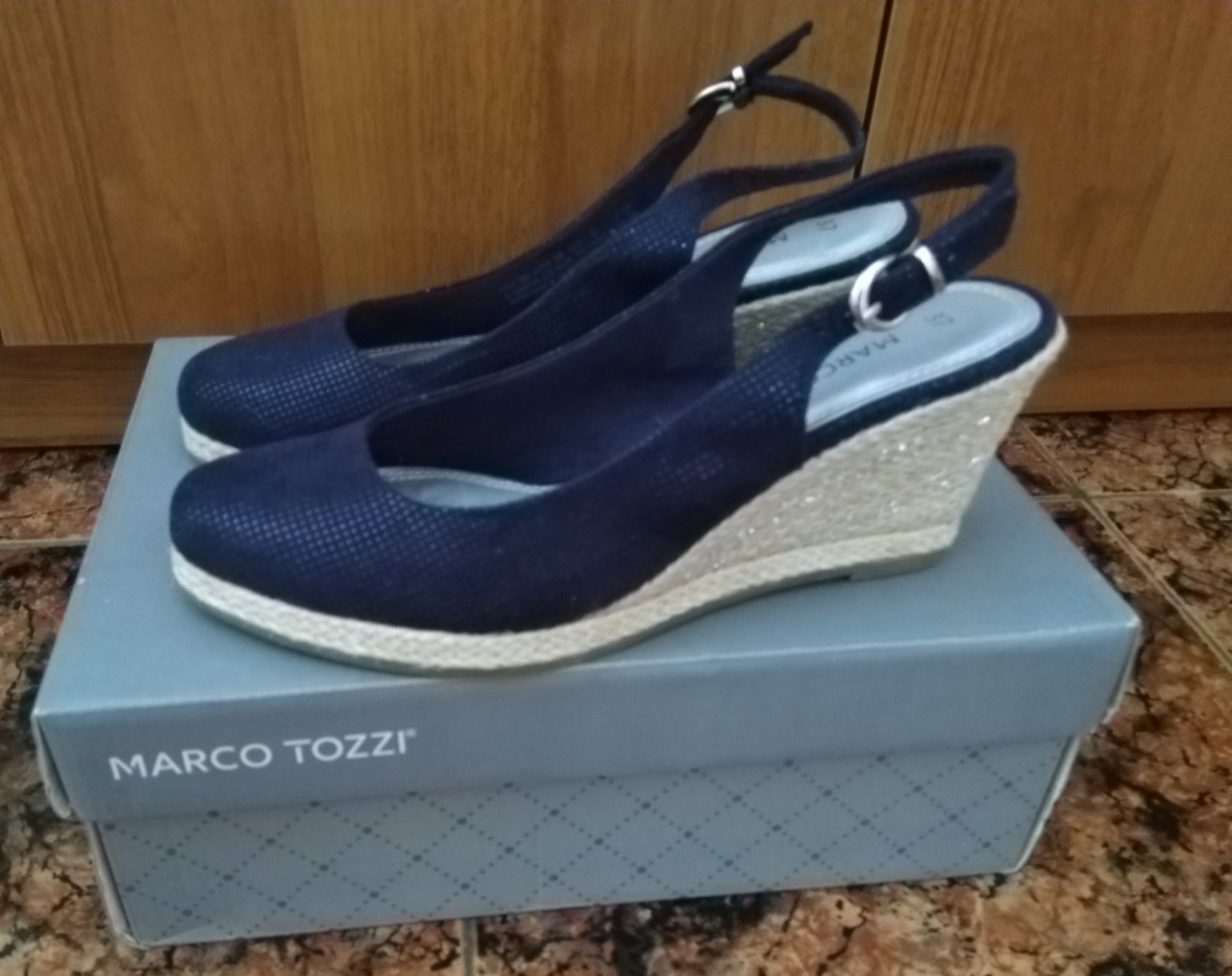 Летни обувки без пета Marco Tozzi 37 номер. Нови, тъмно сини на цвят.
