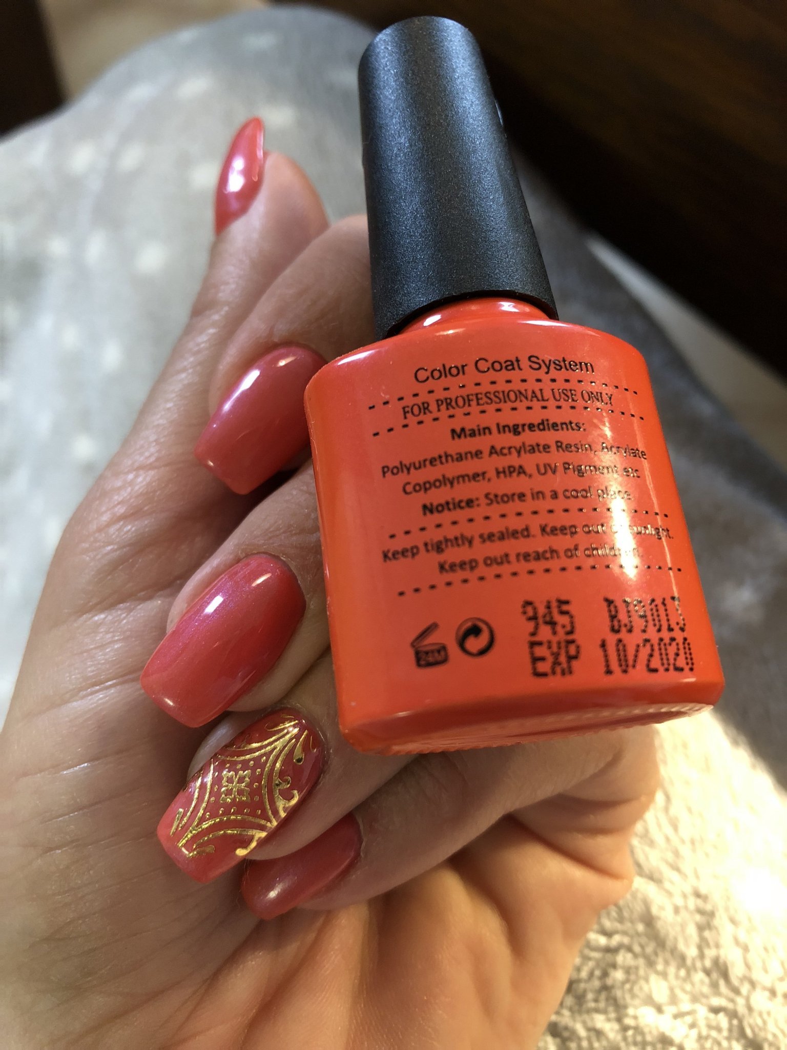 За да не е само мрън, ще споделя, че освен гела от поръчката от Али дойде и един гел лак, който поръчах за “сьомга” . Като дойде шишето обаче, портокалов металик, помислих си, че просто не съм уцелила и толкова. Все пак, реших да пробвам- при нанасянето е оранжев, но при изпичането става много приятен цвят, нямащ нищо общо с портокалите :