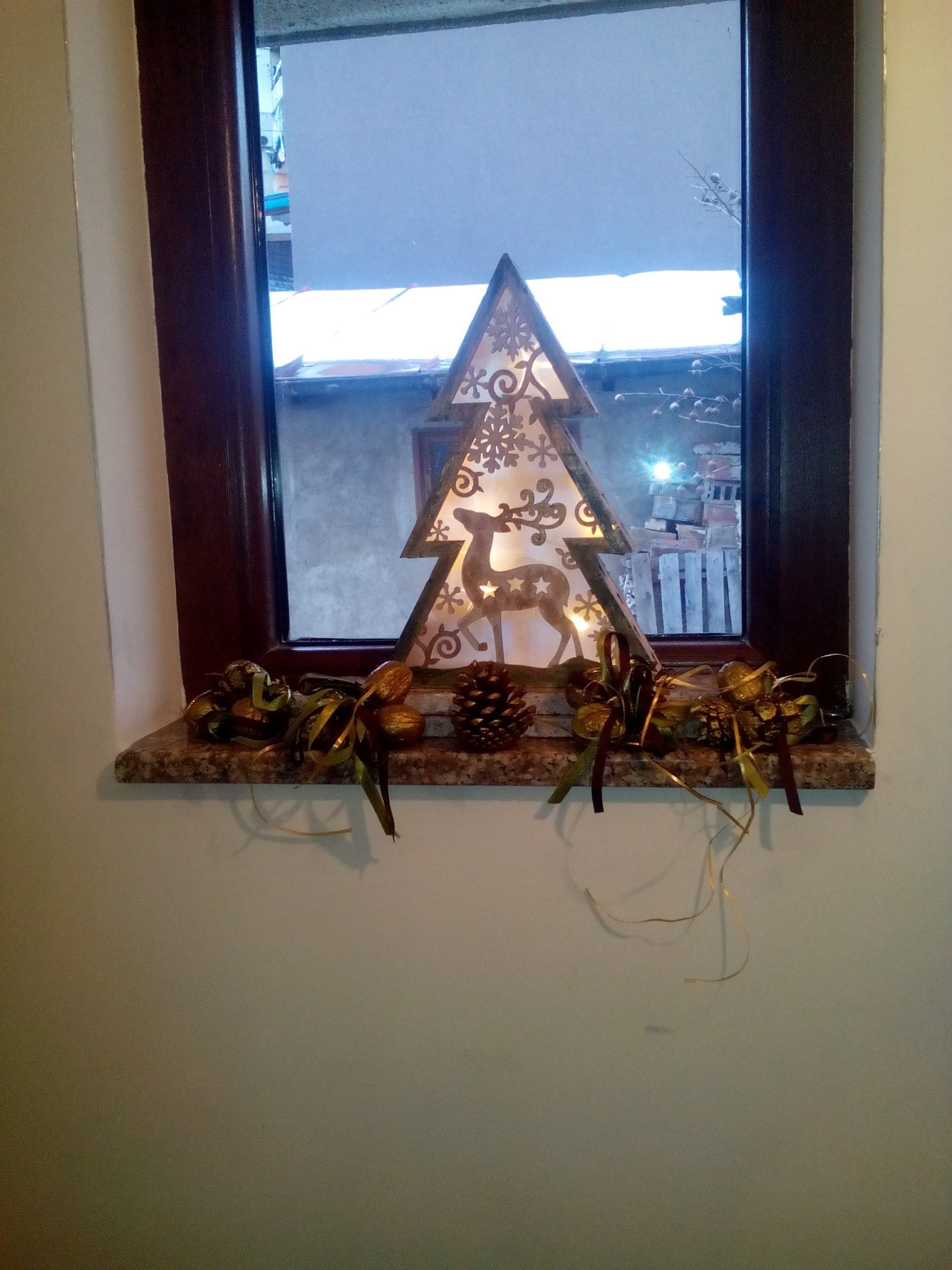 И аз имам същия въпрос. Много приказна украса, уникална е! Мен все още не ме е пуснала коледната украсителна мания. Вечер като изляза само гледам прозорците и терасите на хората. Затова днес в последния момент реших да купя лампички с батерии на единствения неукрасен прозорец на вилата. Едвам намерих отворен магазин.... Все пак успях. Този прозорец гледа към улицата и искам да се забелязва къщата отдалеч. Нямам си друга работа... 😀
