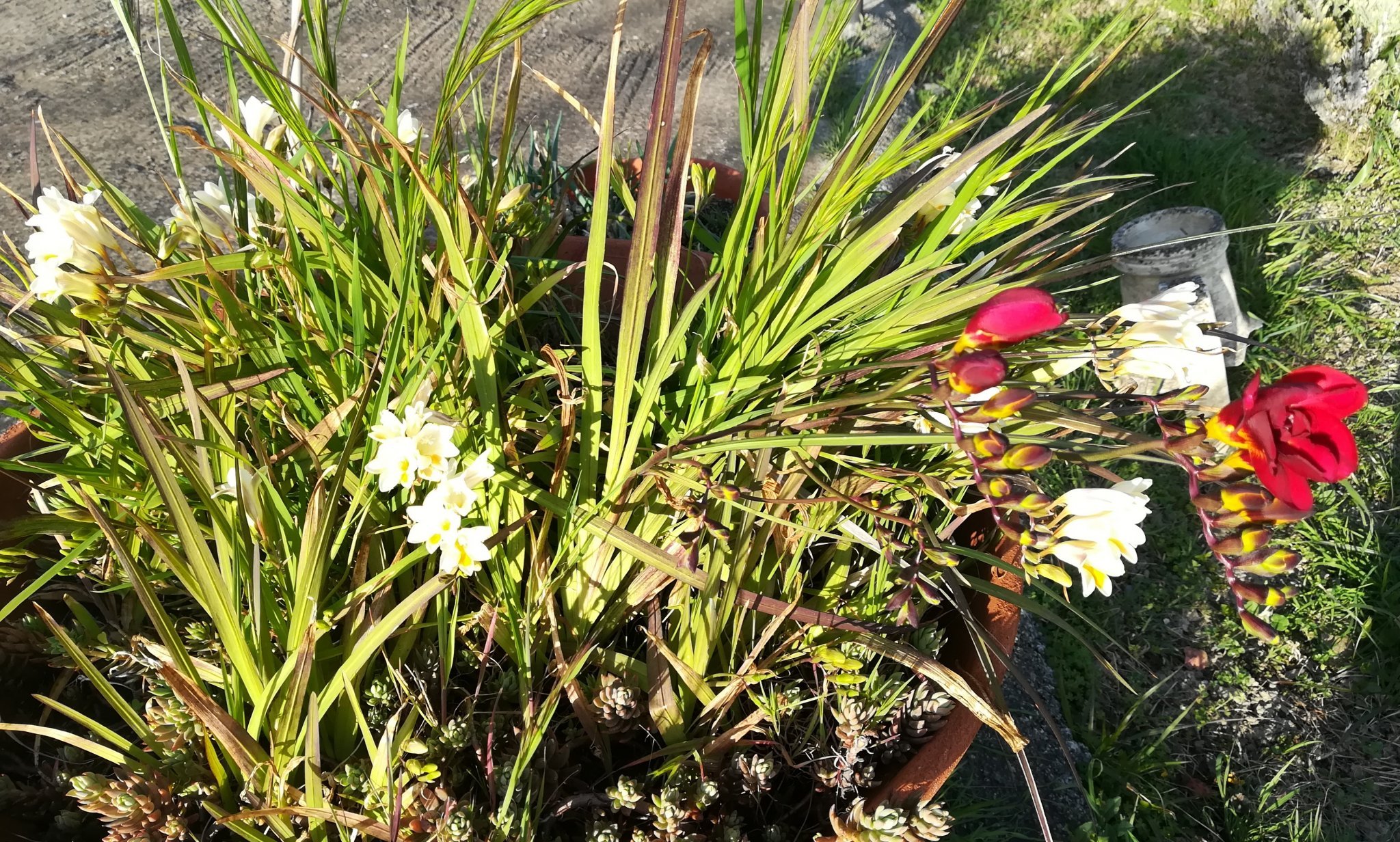 първите фрезии. И аз вчера садих грудки от бегонии. Дано ае хванат,че вече губя пет красавици.