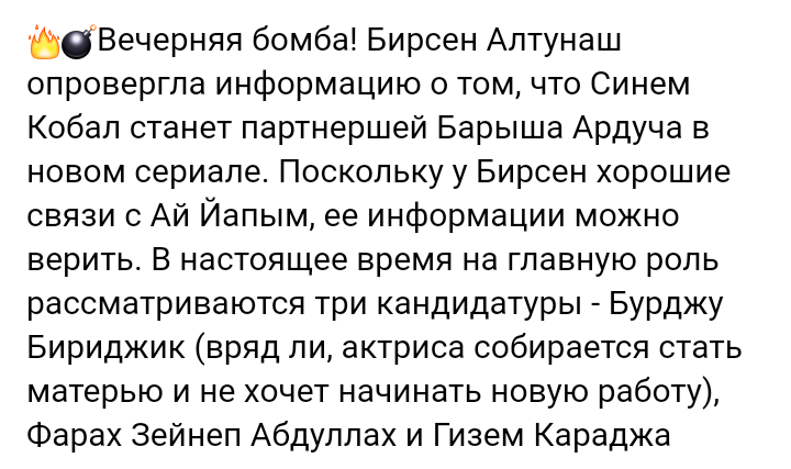 От трите коментирани, наистина най-добра е Фарах. Гледала съм всичко с нея. Справя се добре. Четох дори, че спрягат и Серанай.  Предварително съм сигурна за себе си, че това, което видяхме в Любов под наем няма да се повтори. Тази синегрия, това духовно сливане се получава много, много рядко и се помни дълго. А за такива фанатички като нас е още по-трудно. Серанай и Гизем много трудно ги издържам, но много ги лансират. Ще почакаме и ще видим какво ще се случи. Баръш е нарамил 3-4 дини и не знам, коя ще изпусне.