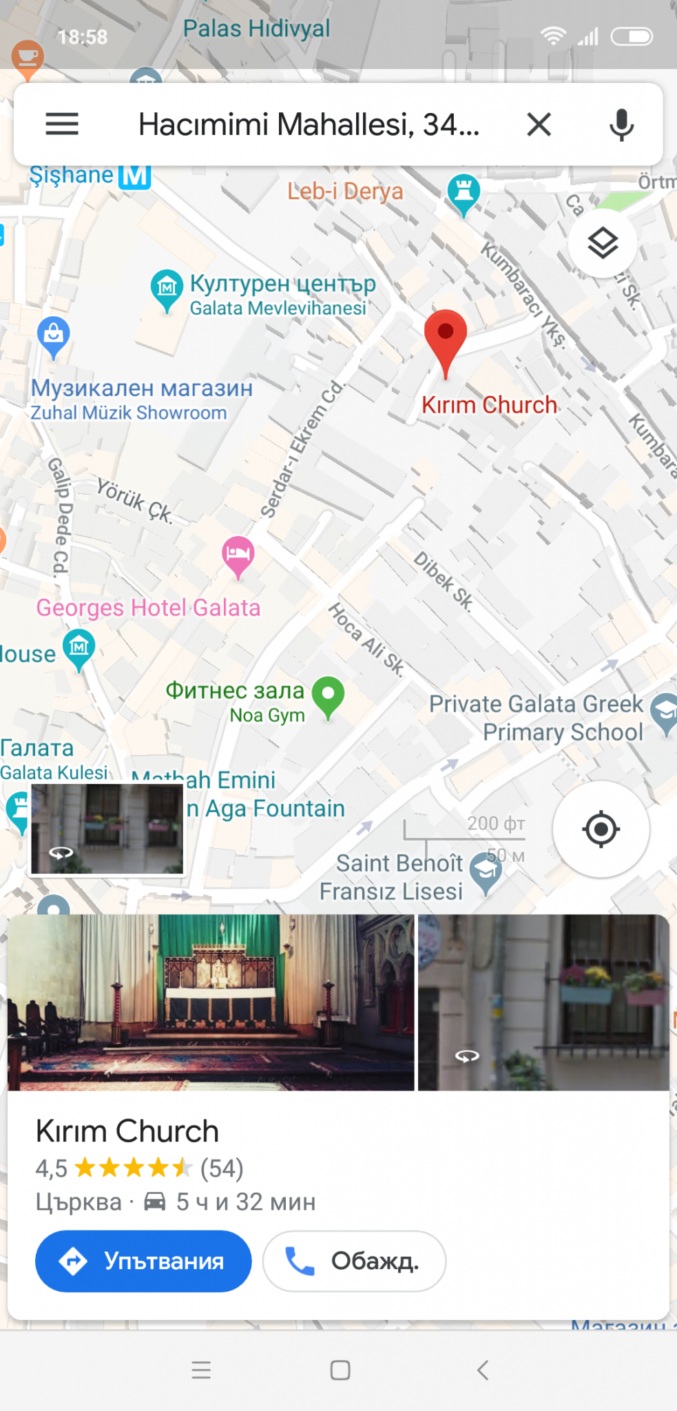 Едно предложение от мен, което не съм срещал в този раздел. Това е Kirim kilise, намиращо се близо до Галата кулеси. Църквата е построена на мястото на старо гръцко гробище, в нео - готически стил, през 1856 година, в памет на английските войници, загинали е Кримската война. Камъните, използвани за строежа и, са били доставени от Малта. През 1970 година е била затворена, но през 1990 година, с финансовата подкрепа на английската общност в... Шри Ланка, отново е отворена за служба. В момента пак тече някаква реконструкция, но въпреки това ми бе интересно да я видя.