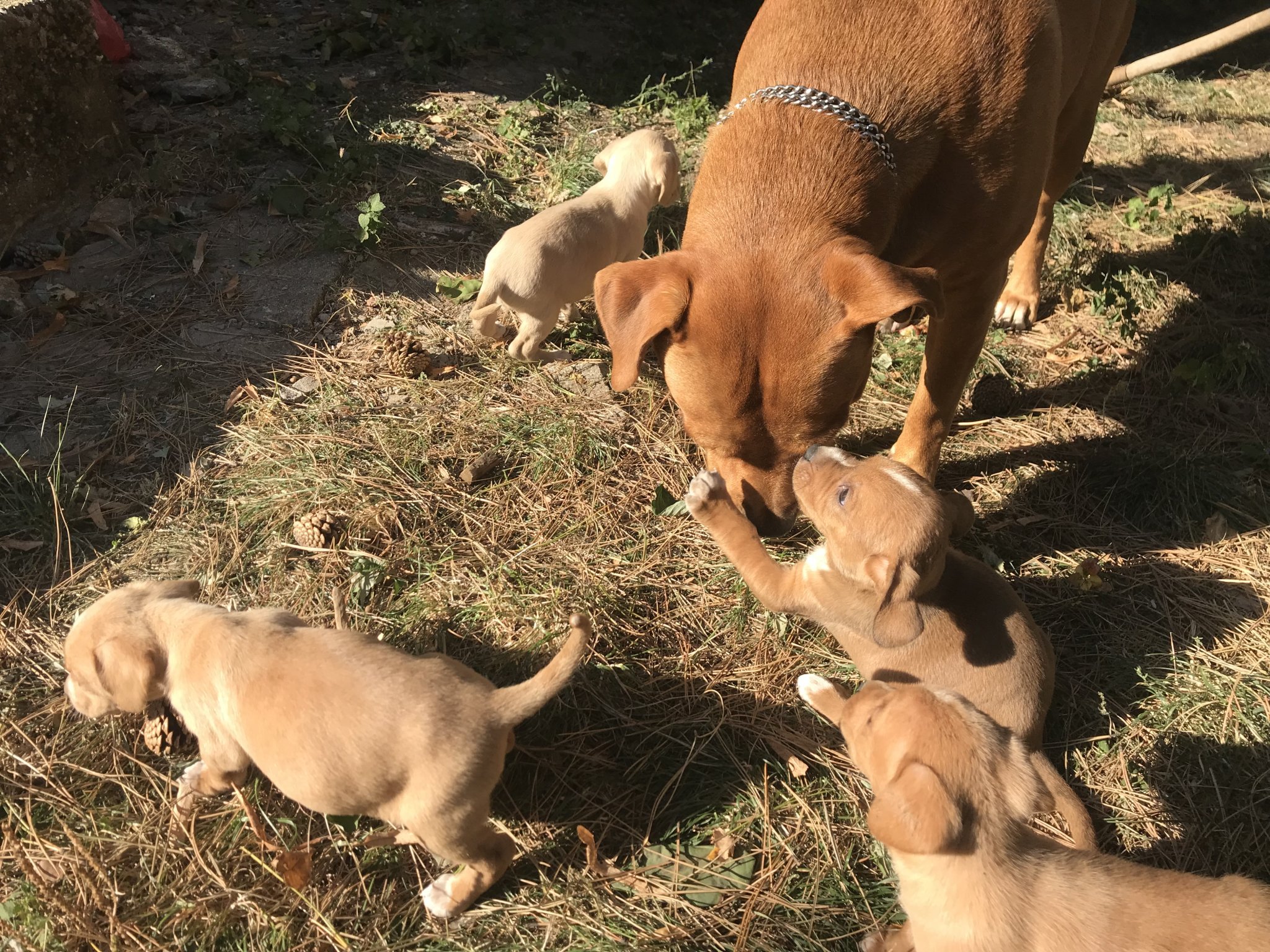 Днес бяхме на село и вече бебоците щъкат навсякъде. И понеже да взели лакомията на майка си и само търсеха къде по Макс има мляко, а той милия само бягаше от тях. 😂😂😂