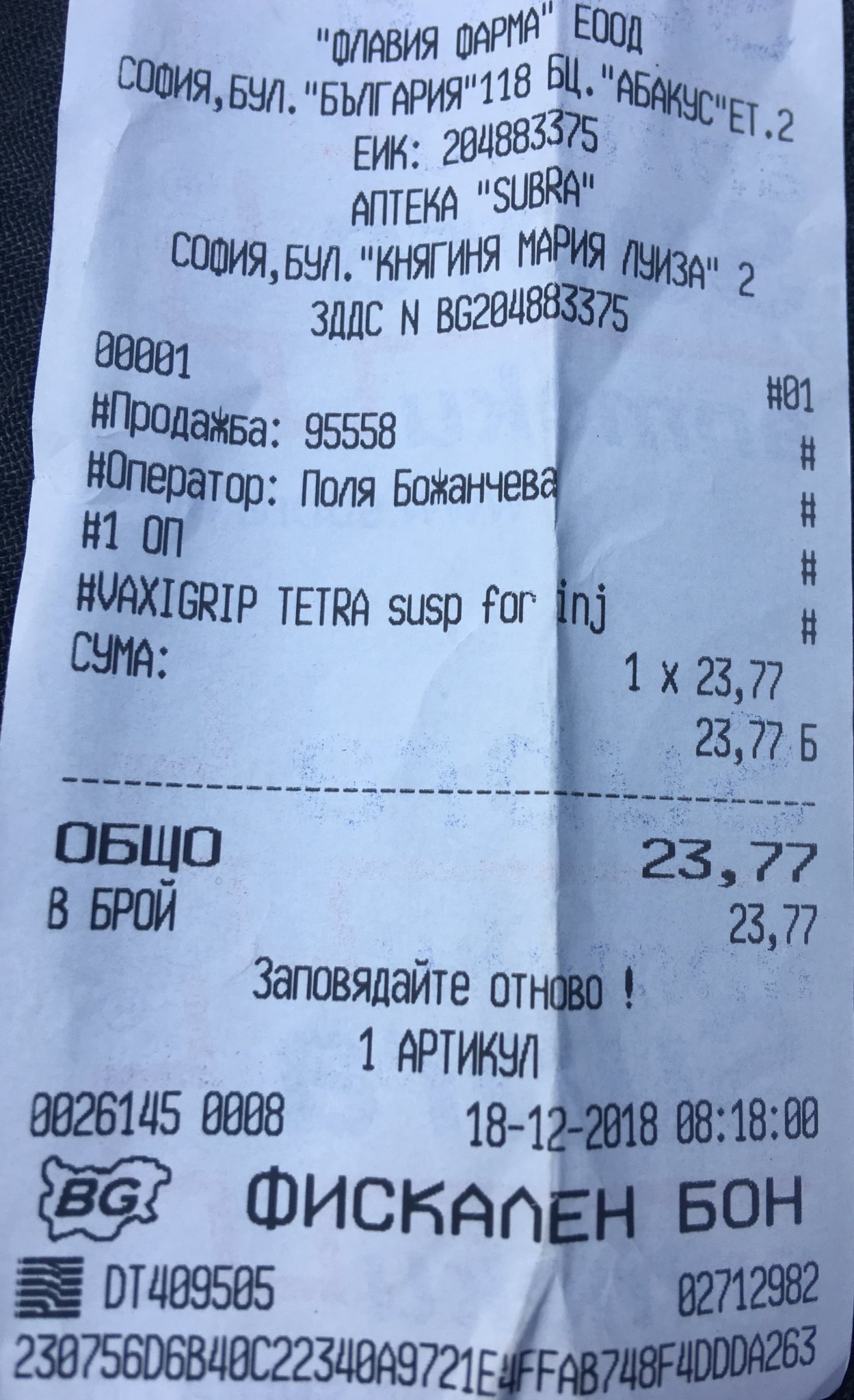 Вчера си купих Ваксигрип.