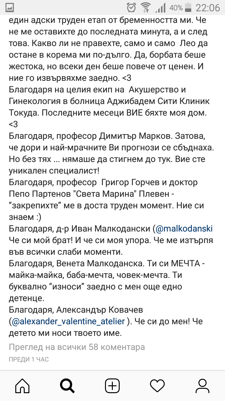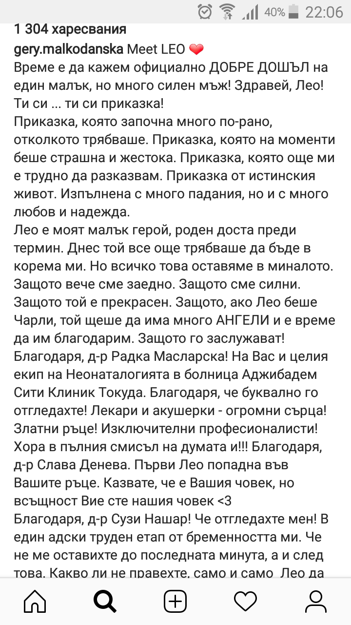 Много трогателен пост от Малкоданска. Явно е имала много тежка бременност, приключила доста по-рано. Таткото не е лош, някой бизнесмен ли е?