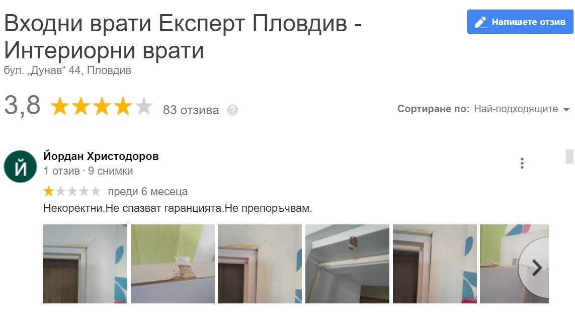 Само от тези измамници не се лъжете да поръчвате, никакво отношение към клиента, "управителя" е с 0-лево възпитание, 3 месеца 3 врати не можаха да ни сложат, а като ги сложиха качеството и резултатите са отвратителни, не си вдигат телефоните, крият се... С тези само проблеми ще имате