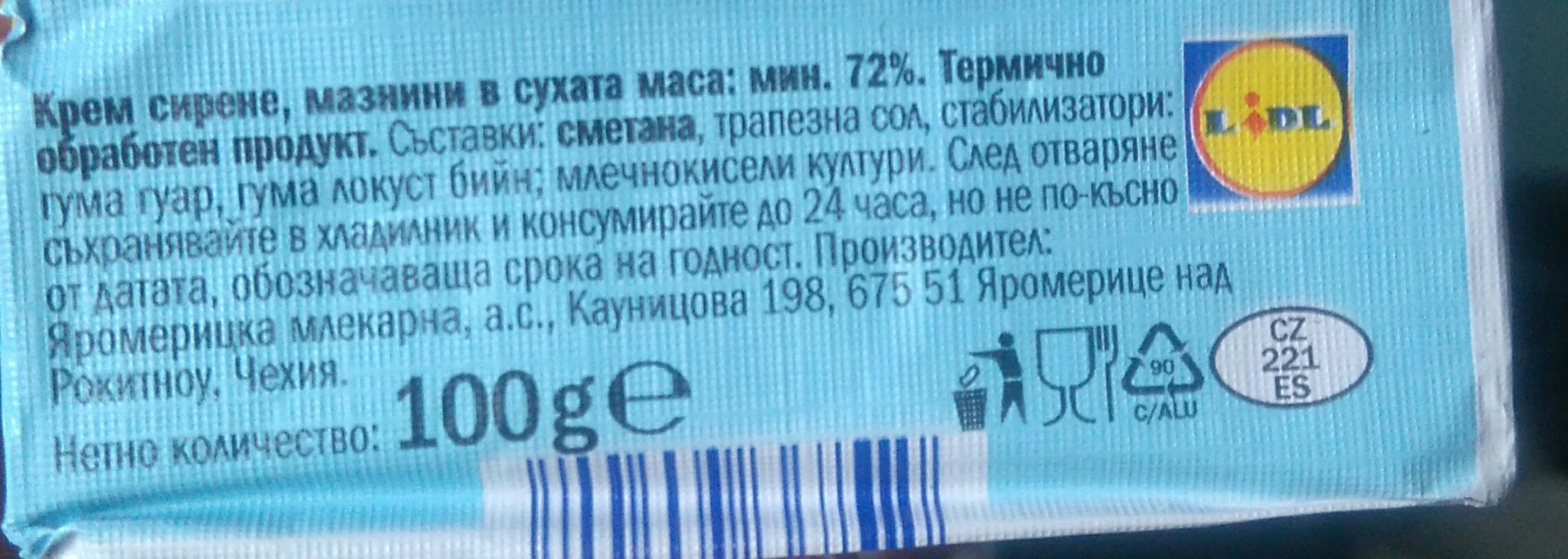 Ти сериозно ли??? Класическото производство на крема сирене е от краве мляко и сметана с добавка на закваска от млечнокисели култури. Притеснява те, че не пише "мляко" ли? А сметаната от какво да е направена? Къде е имитацията?