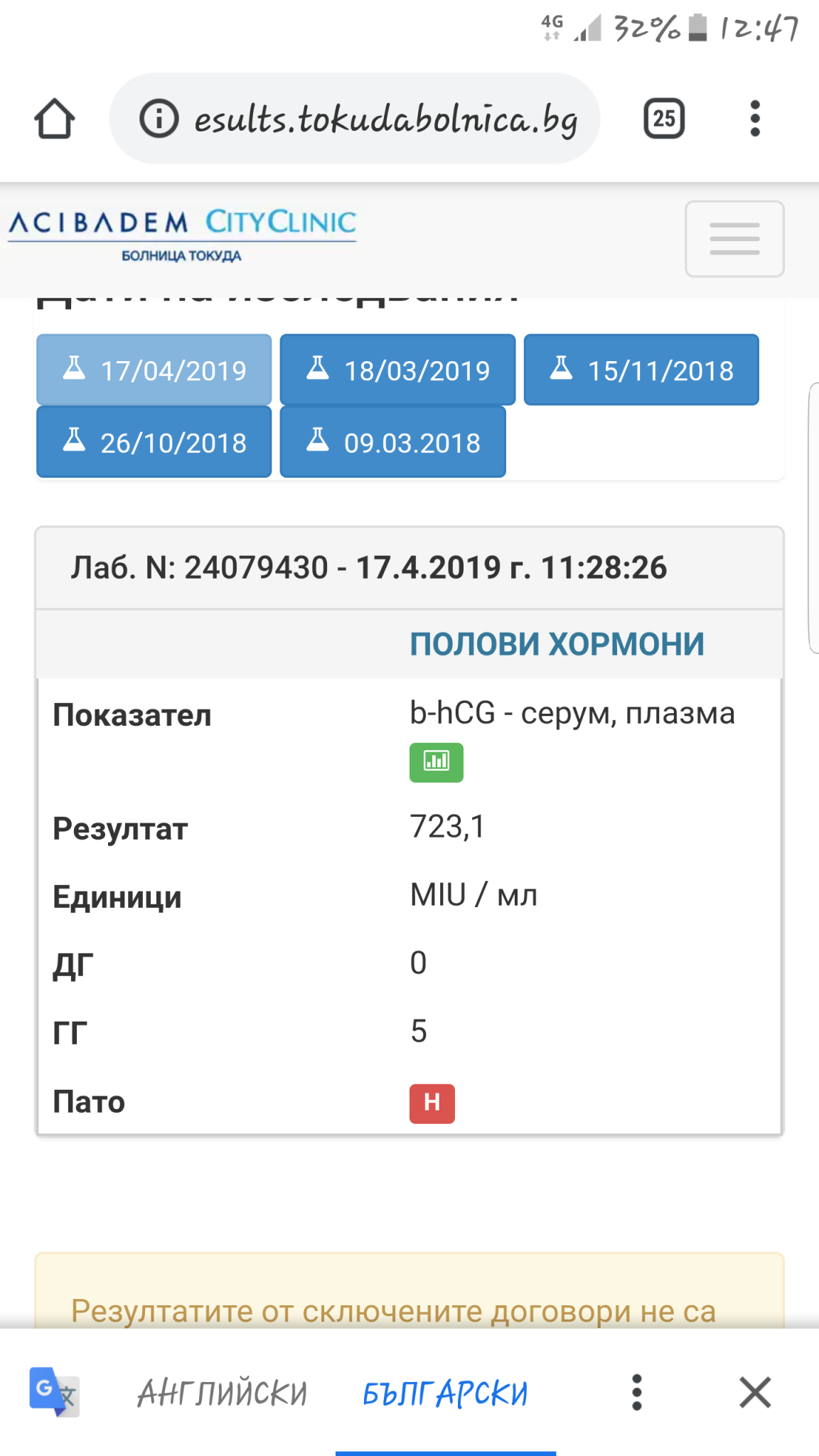 Какво означава повишаване на ЧХГ от 34,17 на 11-ти ден след ембриотрансфер?