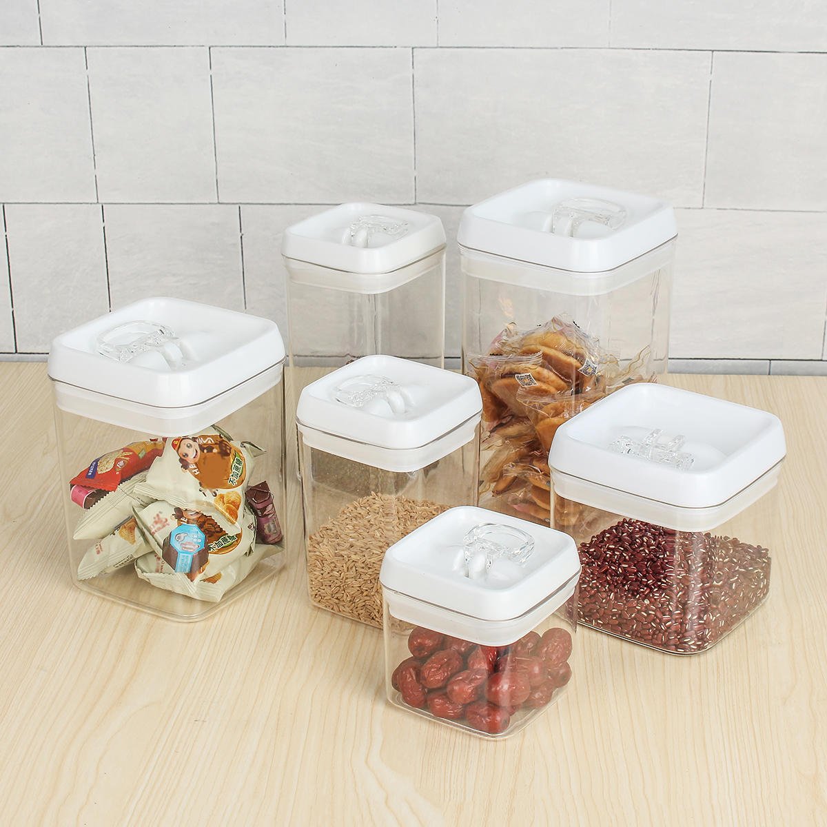 Моите са точно от вида на втората снимка. Много ги харесвам, защото са различни размери и преценявам кои продукти в какъв размер да ги съхранявам. Например брашно и фузили съхранявам в най-големия размер. В най-малките слагам фиде, боб, леща. В средните пък слагам различни видове ориз. Обемисти са и биха могли да смятат за разхищение на място, но от друга страна за съответните купешки опаковки са тамън. Големите не помня колко събират, във всеки случай обемът им е около 2л. и отгоре, средните са 1.7л., а малките - 1.1л. Могат да се слагат и едни върху други.
