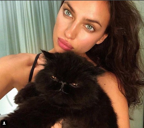 Ирина Шейк на разходка и със странно гледаща котка Simple Smile