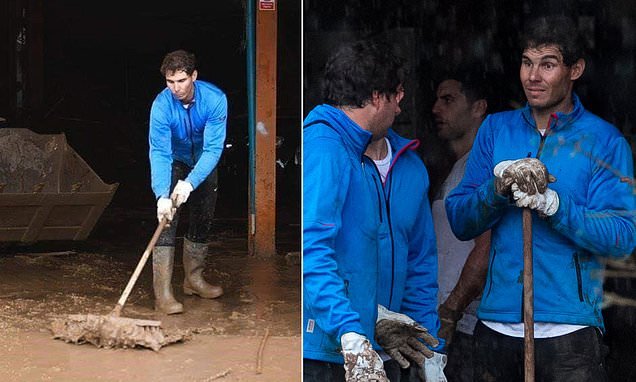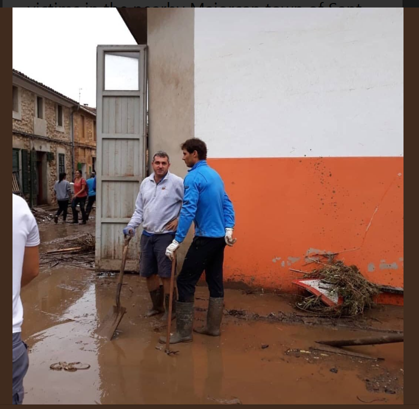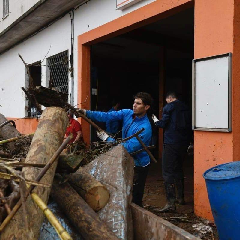 Рафа Надал се включи в почистванията на градчето Сент Лоренс след поройните дъждове и наводнението, връхлетяло испанския остров Майорка.
