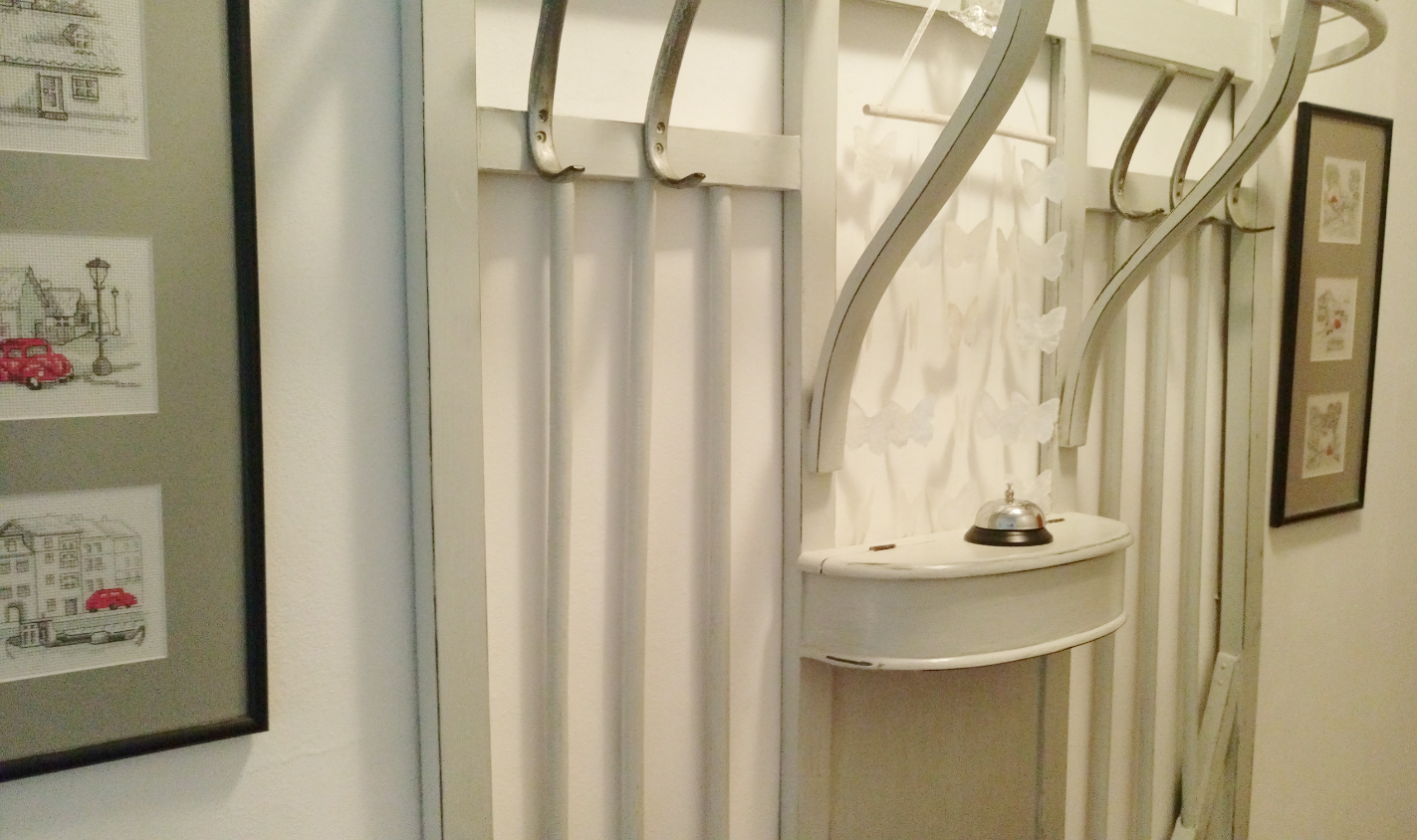 Исках да споделя с Вас и моето произведение - старата закачалка на баба ми, направена от мен с тебеширена боя / и нея си правя съвсем сама/ - дано ви хареса