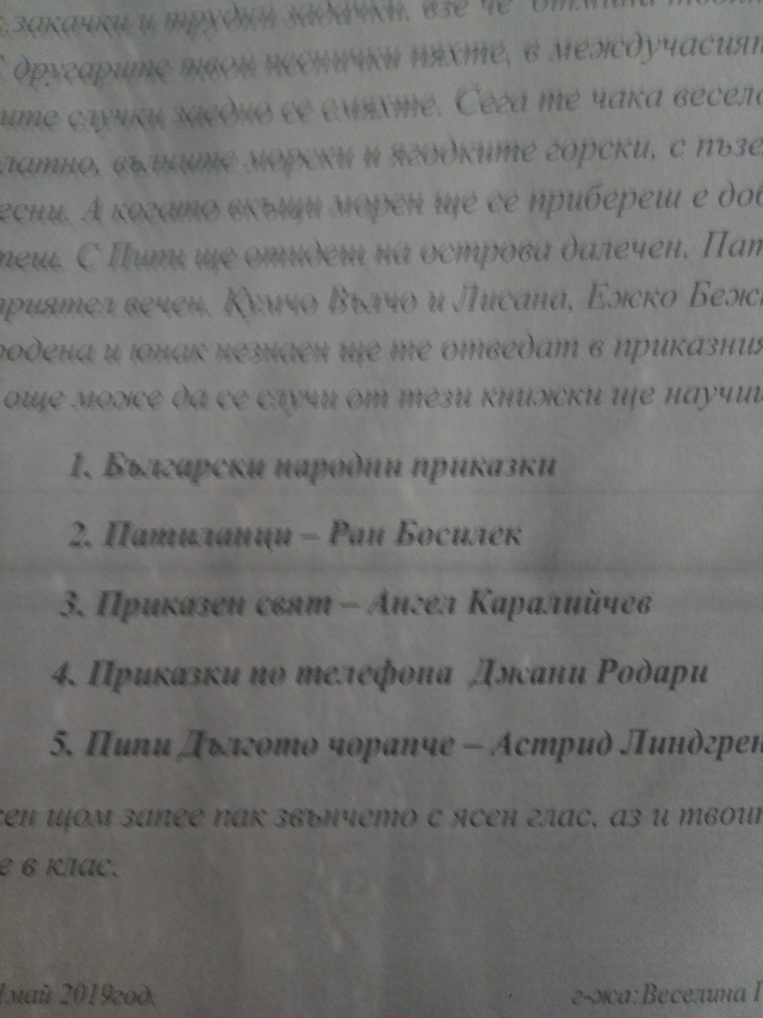 Ние нямаме задължителен списък. Всяко дете трябваше обаче да напише на листче 3 книги по избор и да го занесе на директорката. Достатъчно обвързващо е, за да не се скатае някое дете. Одобрявам! 😊