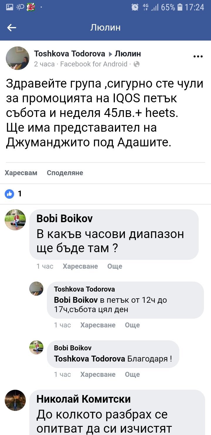 За цигарите GLO - това ми излезе във ФБ, с телефон на търговски представител
