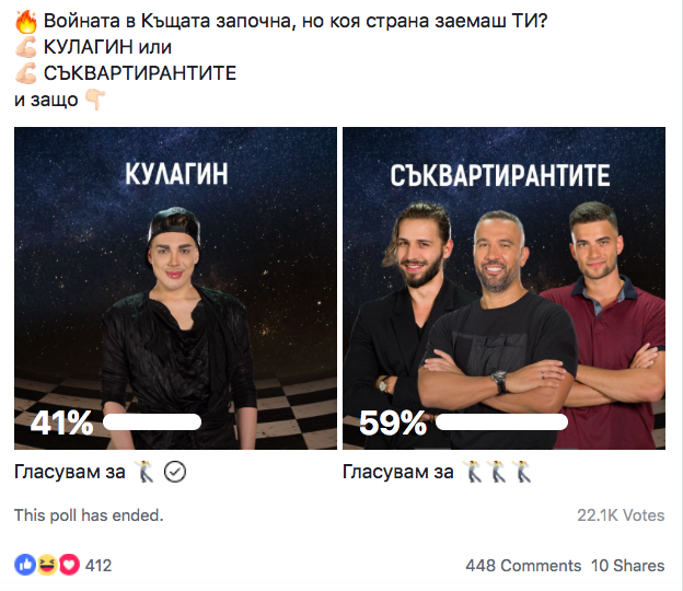 Онова беше Кулагин срещу Ваня Костова и вчера стигна до 150 000 гласували - работеше си и след изгонването. Според мен са пуснали някаква програма за генериране на гласове и са забравили да я спрат.