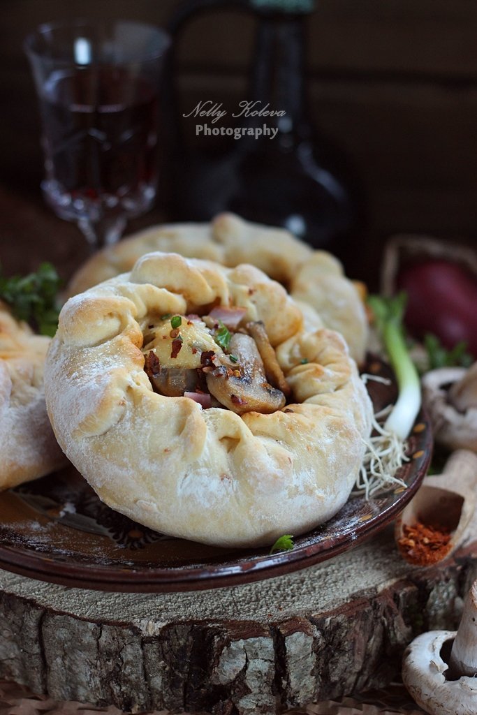 Рецептата за кюфтета от червени чушки включва пържене на лук и кайма, добавяне на нарязани гъби и картофи, подправяне с чубрица, сол, черен и червен пипер, наливане на вода и оставяне да къкри, докато се изпари водата и картофите омекнат. Тестото се прави от брашно, захар, сол , кисело мляко , мая и топла вода , което се оставя да втасва. След това се разточва, разпределя плънката и завива. Накрая пече и завива с кърпа, за да остане мекичко.