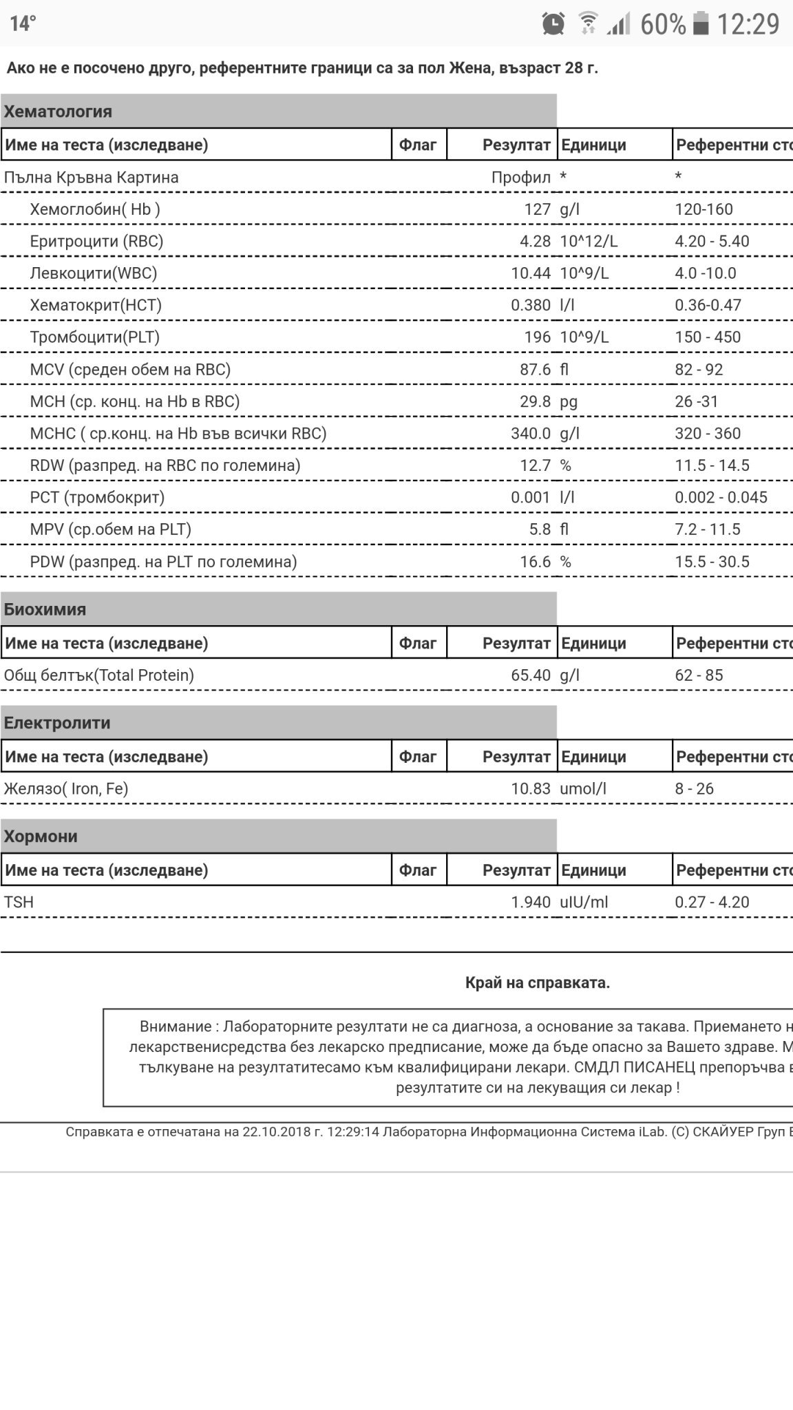 И аз съм с положителна нагласа , не мисля за упойки искам вече всичко да минава и бебка да се появи жива и здрава . Днес пуснах контрола на тсх и пуснах и белтък и желязо и двете са на долната граница  . В сряда съм на ЖК и ще питам док , но може ли мамите който разбират да хвърлят едно око ?