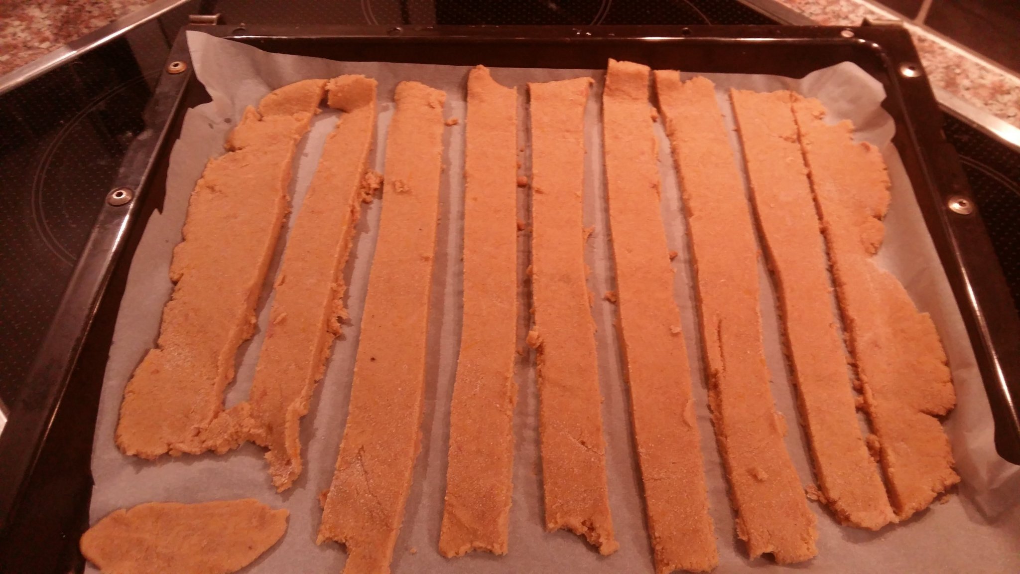добави още брашно докато придобие желаната еластичност, после се разстила и се пече 30-40 мин, до леко препичане на връхчетата на бисквитите. Бисквитите трябва да останат полу-меки.