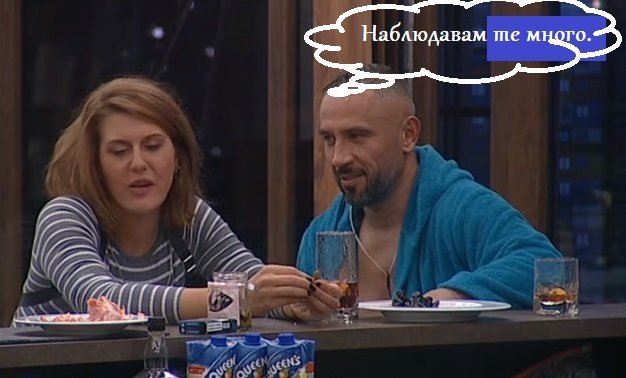 На Папи някой му разправял, че ще им дават наркотици вътре. А за Насо писали, че жули бяло. Петко и Яна ги изтипосали с Орлин на една снимка. Диона преди ББ писала на Насо в Инстаграм.