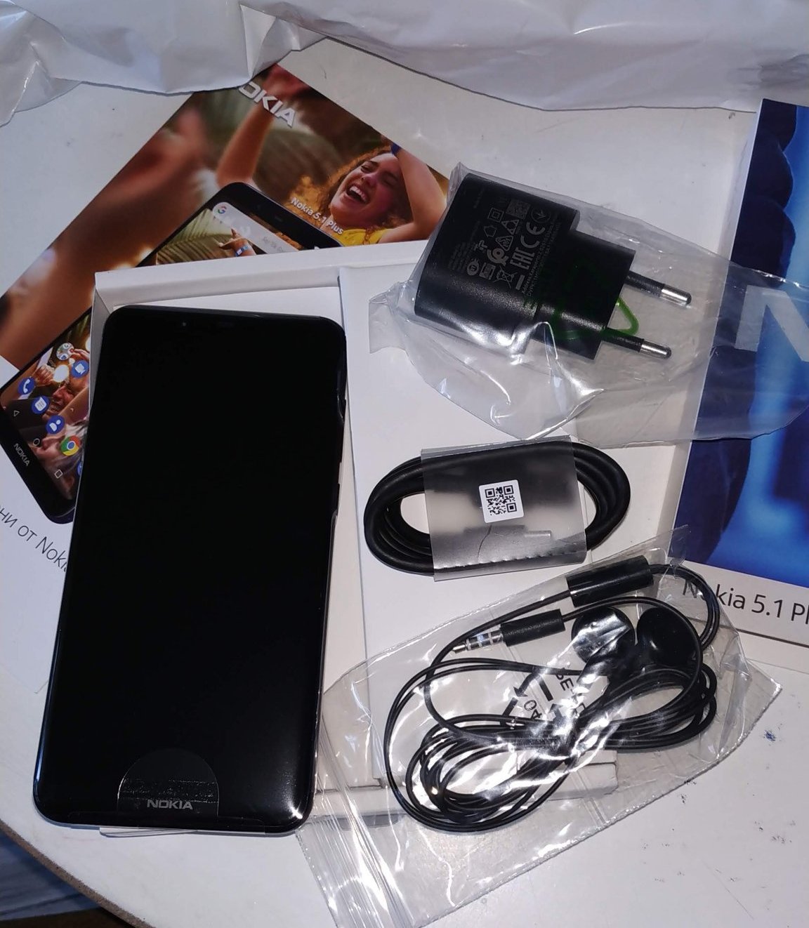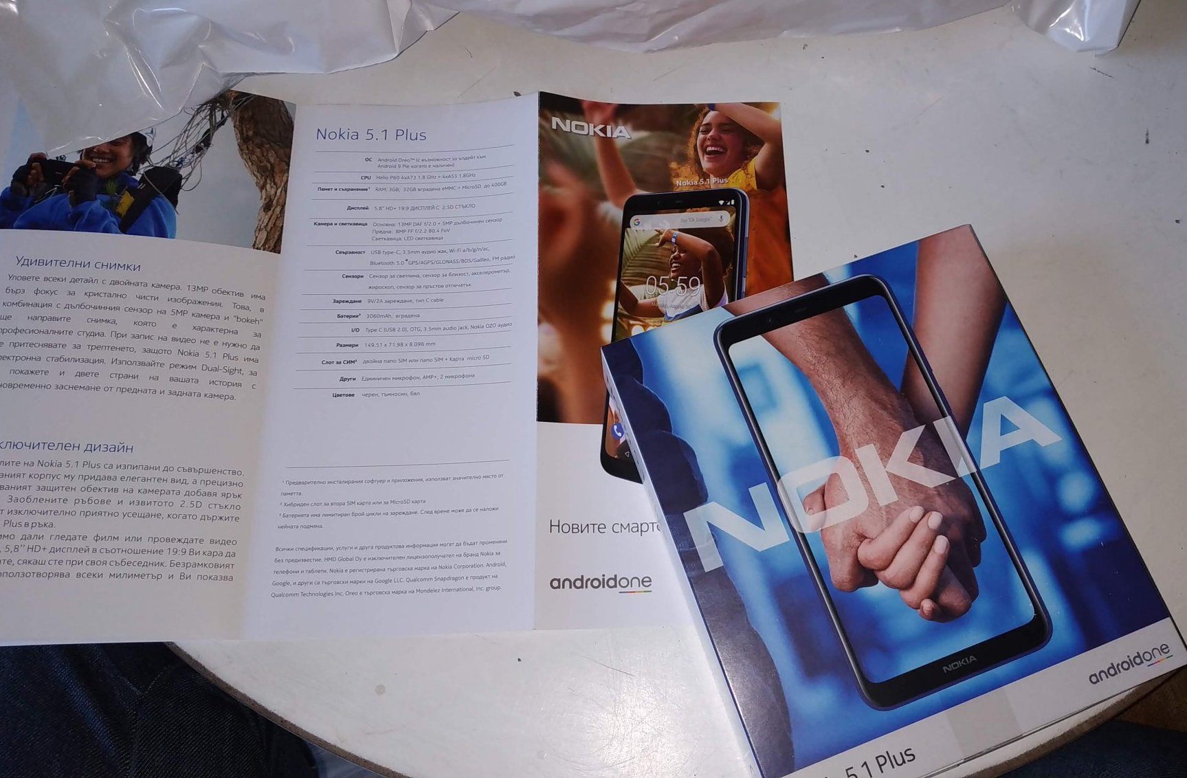 В кашончето освен кутията със самият апарт, която беше в чанта, намерих и рекламна брошура за новите смартфони Nokia с чист Android.