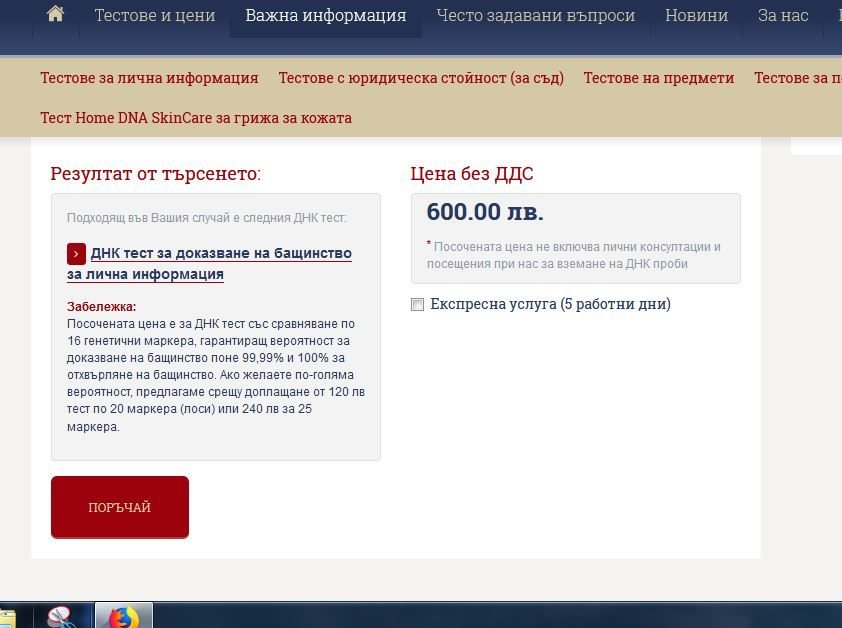 Нали каза, че си проверила в сайта на Амгенлаб и тестът за бащинство струвал 1000 лева? Странно защо няма точно такава цена при тях за никой от вариантите за изследване.