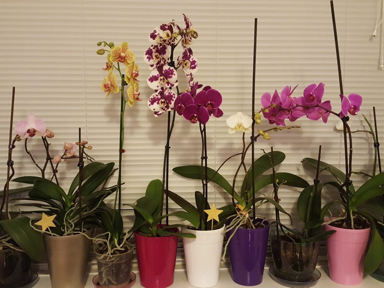 За пръв път пиша в тази тема, но много ми се ще да споделя с вас историята на моите орхидеи Simple Smile Започна се с подаръци за рожден ден и други поводи, преди около 4 години. Бързо събрах 5-6 орхидеи. Когато ми ги подариха бяха цъфнали и красиви, след това прецъфтяха, цветоносите им изсъхнаха и в следващите 3 години нито една не пусна цветонос. Бяха живи, но като че в някакъв застой. Тогава все още не свързвах нещата, но в онзи период имах доста тежки семейни моменти, неразбирателства, караници, преживях мигове на разочарование и тъга, плачех и страдах много. Миналата година този брак приключи с развод. Няколко месеца по-късно срещнах друг мъж, влюбихме се и бързо заживяхме заедно. Само 2-3 месеца след като се пренесохме в новата къща, орхидеите започнаха да пускат цветоноси и нови листенца Simple Smile Започнаха да избуяват, дори да пропуснех деня за поливане не им се отразяваше. Сега са 12 на брой, от които 9 цъфтят и са отрупани с пъпки Simple Smile Heart