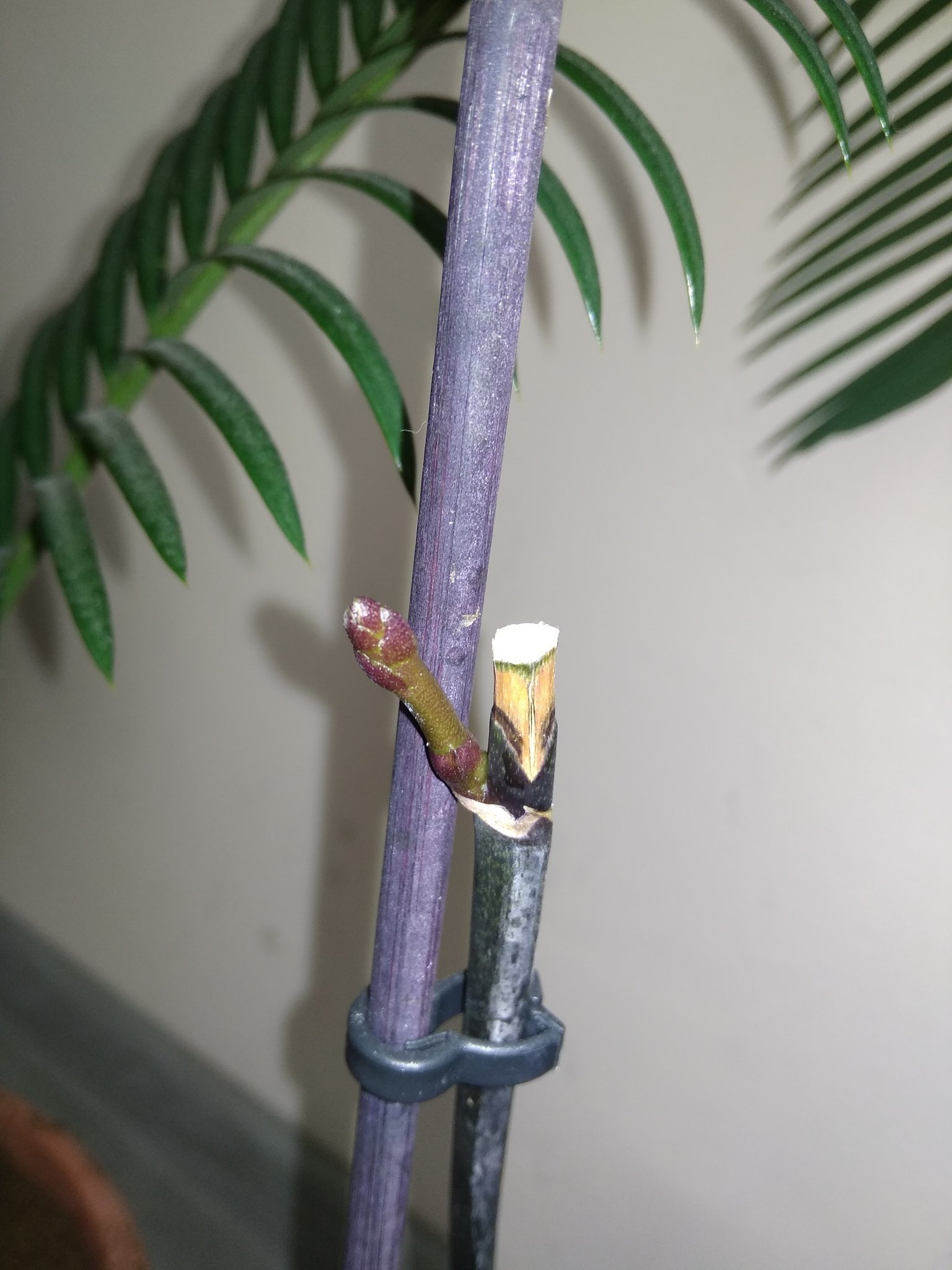 Да споделя и аз моята радост от новорастящ цветонос на едната ми орхидея,която е купена през септември,след като прецъфтя отрязах малко изсъхналата част и от там сега расте....а за другата орхидея.....съсипах я🙄☹️