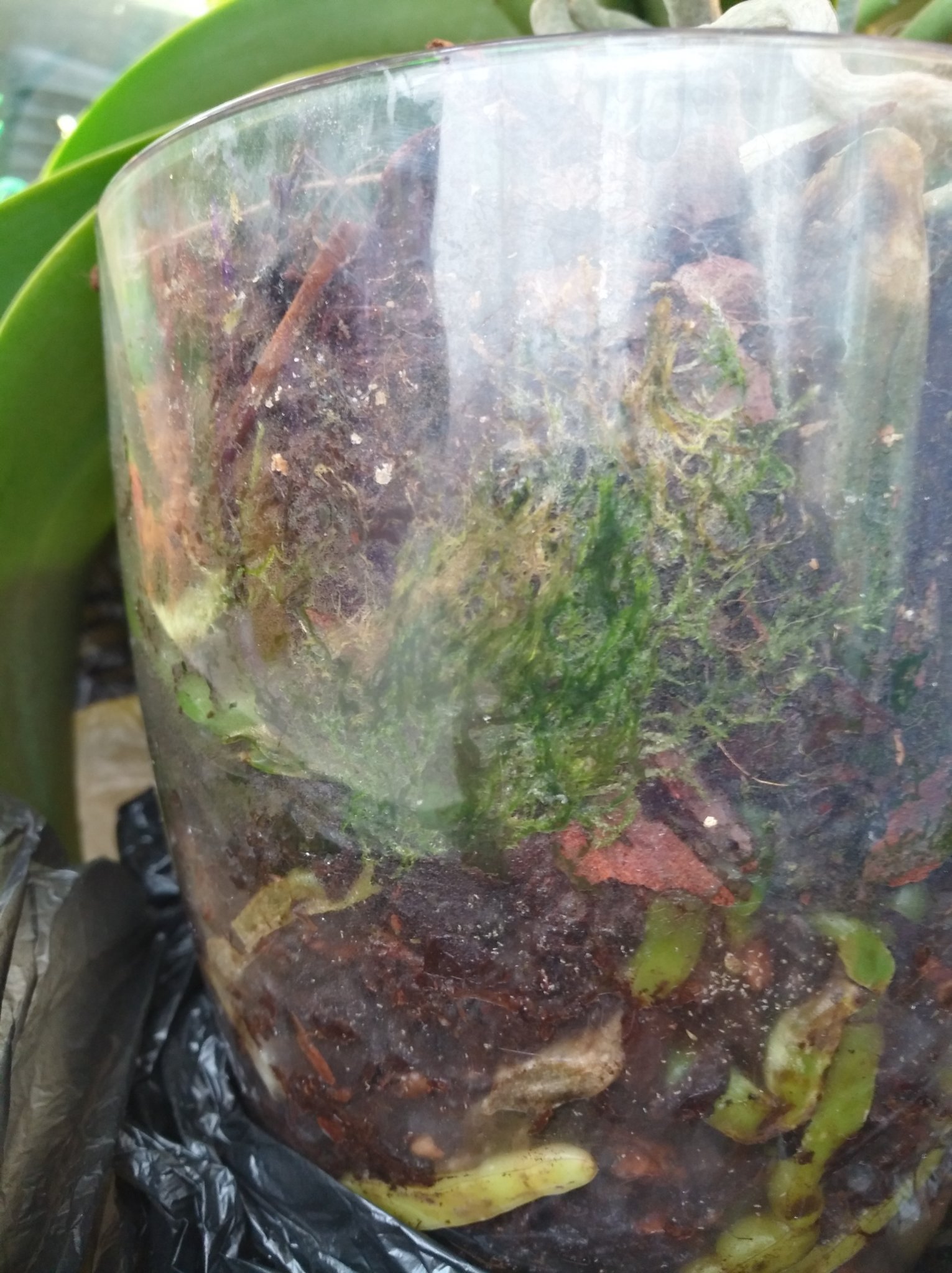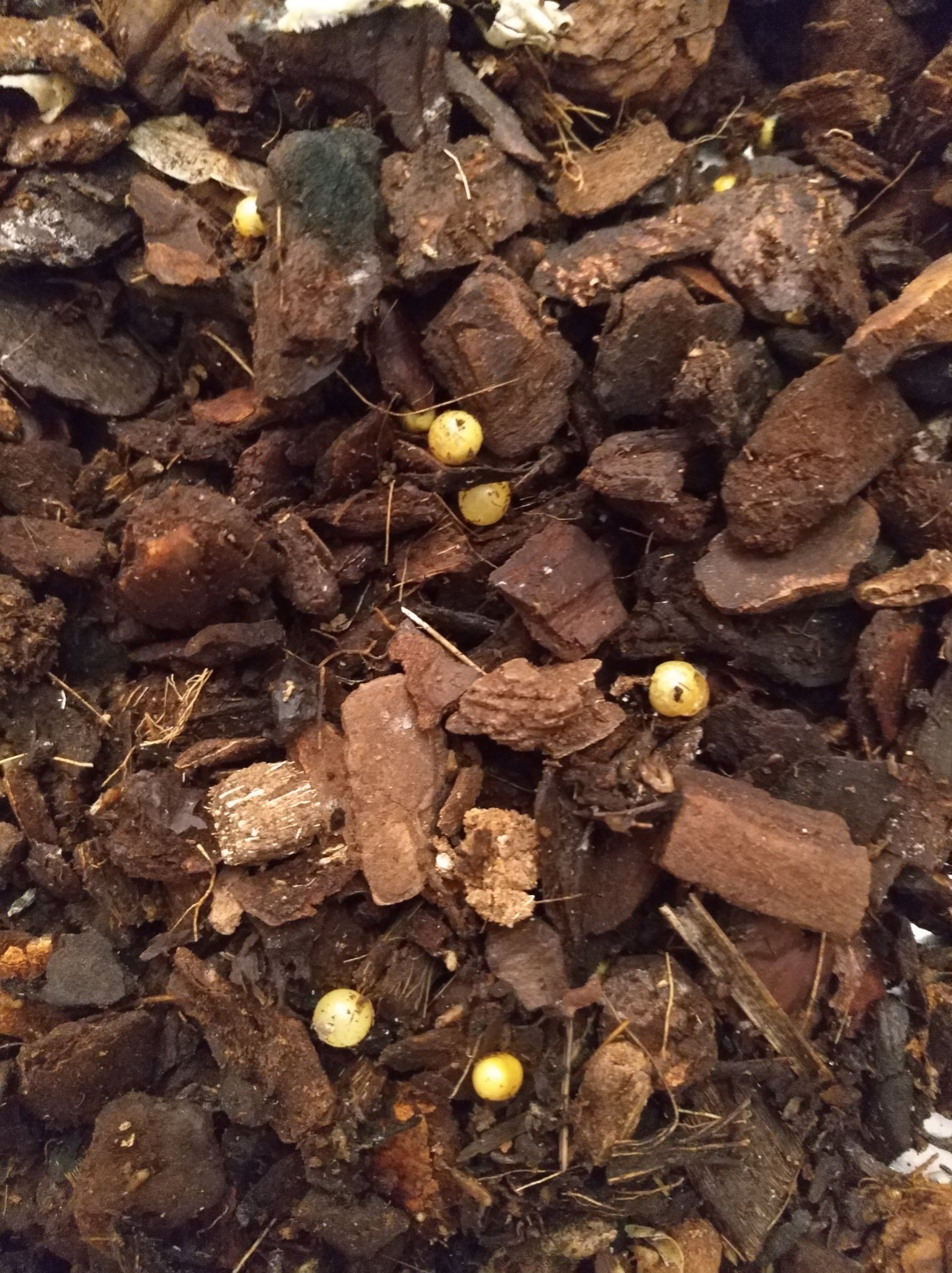 Друго питане: какво може да е това? Намерих тези топчета в корите на една новокумена и загинала за 3-4 седмици орхидея (сърцевинста стана черна). Няколко бяха лепнати/впити в корените... при натискане се пукат, пълни с вода...  Thinking