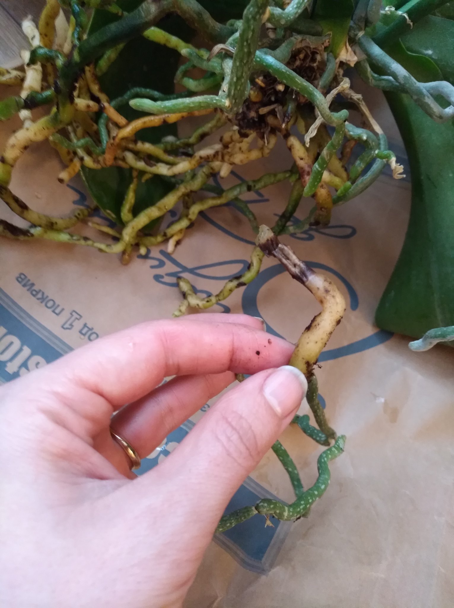 Гнилите корени е ясно защо са изрязани, но увяхнслите листа, защо? Те сами падат листата, ако има проблем в основата им Thinking