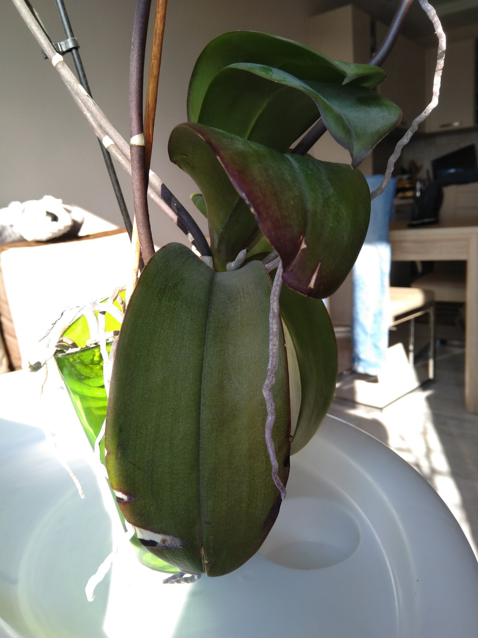 Здравейте. С интерес чета мненията Ви и за няколко дни разгледах повечето теми. Имам десетина фалчета, които гледам от около 3 години. Изчетох доста за првилно отглеждане и болести като цяло, но бих искал да се допитам и до вас по някои въпроси. На някои от по - възрастните цветя част от корените са почернели, но само часта им извън субстрата (твърди са, не са омекнали).Надолу в саксията изглеждат добре. Също така имам петна по някои листа, които са най отдолу, а горните са здрави и свежи. Това по листата е от доста време и не се увеличава рязко и засега не влияе на останалата част от листата. Имам и растения, които са за пресеждане, но са с цветоноси. Въпроса ми за тях е дали е удачно да прсеждам сега или да изчакам да прецъфтят и по - топло време. Прилагам и снимки на проблемните листа и корени.