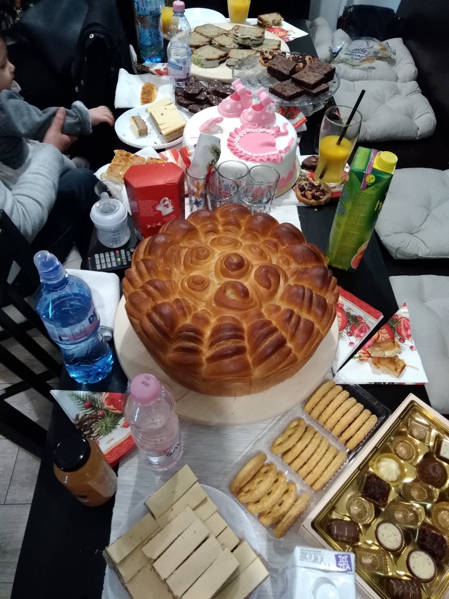 Погачата също добре мина, много сладко, много остана, а ритуалът беше същият както Деси го разказа, само ще допълня, че гостите си тръгнаха по светло, не се казва довиждане и майката не изпраща, за да не й спре млякото и нищо не се изнася от дома в този ден. Simple Smile