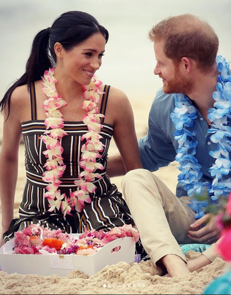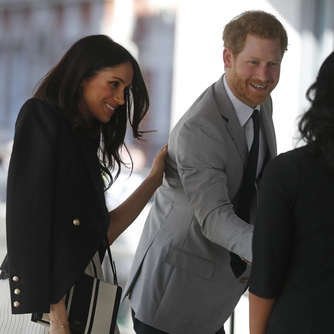 Еее, втората снимка е хванала всички дразнещи жестове на Мегън. Сгърчена, приведена извинително ииии изненадааа - подпираща Хари Joy