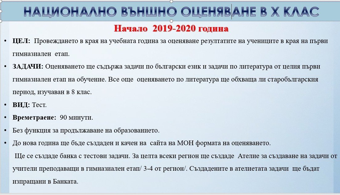 НВО в X клас - празно