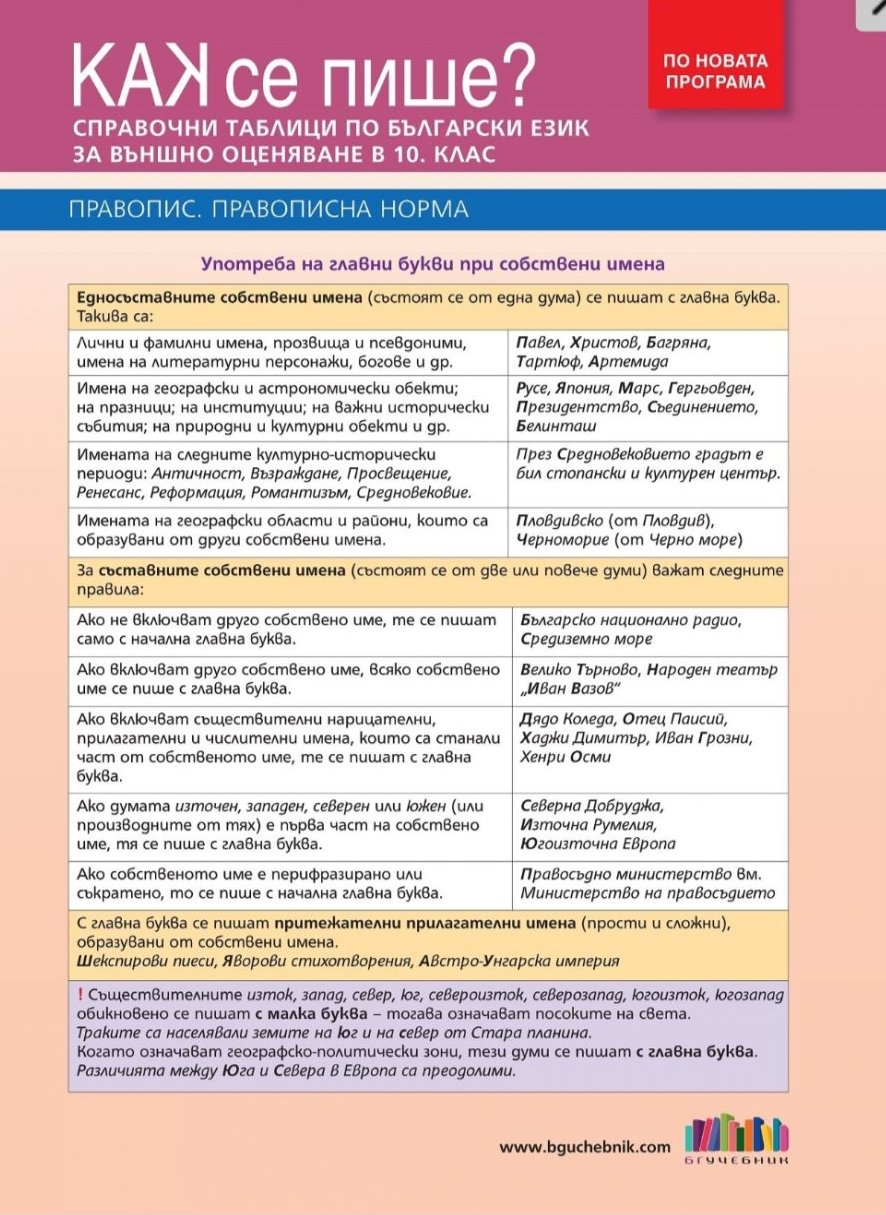 От БГ учебник са направили справочни таблици за НВО по БЕЛ 10. клас. Както и очаквахме, произведенията в таблицата и христоматията са само български, събрани от трите класа, и започват със старобългарската литература от 8. клас.
