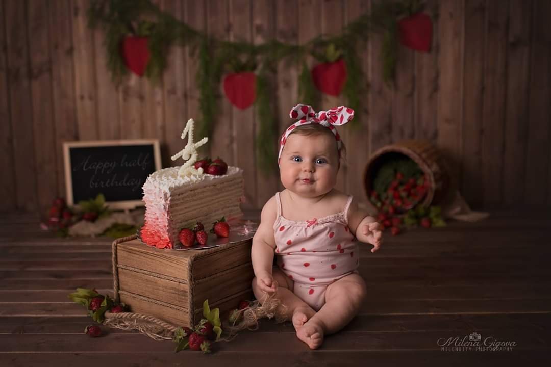 На мен ми е фаворит за снимка с половин торта тази на една фотографка в София, която снима дъщеричката си, любима ягодова тема: