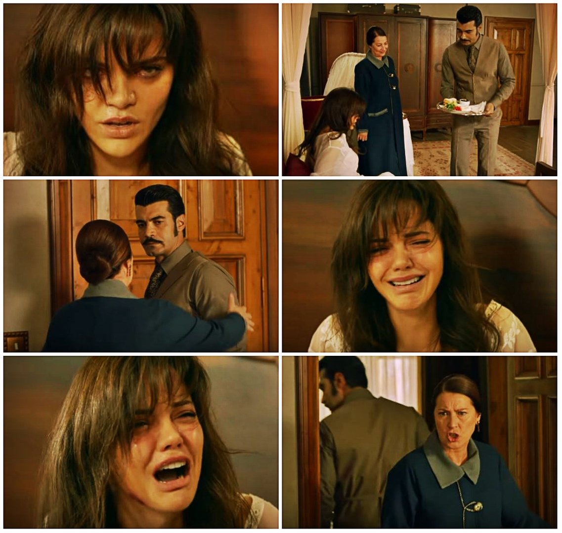 Героите размишляват. Зюлейха е видяла отворената врата и след като е прочела присъдата на Хюнкяр, мисля, че думите за жестокостта са към нея, е избягала с детето. Другото в четвъртък. Grinning