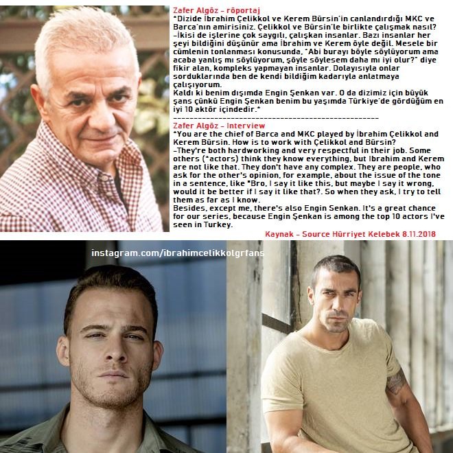 В интервю с "началника"(Зафер Алгьоз) на великолепните го питат как се работи с Керем и Ибрахим. Той казва, че и двамата са много работливи и се отнасят с уважение към работата. Други актьори мислят, че знаят всичко, докато Керем и Ибрахим не били такива. Задавали въпроси. Например го питали дали тонът, с който произнасят дадена реплика, е правилен. "Бате, аз го казвам така, ама дали го казвам правилно. Ако го кажа еди-как си, дали няма да е по-добре." И той споделял собственото си мнение с тях доколкото самият той знаел. С тях работел и Енгин Шенкан (бащата на Барджа), което било огромен шанс, защото го считал за един от десетте най-добри актьори в Турция.