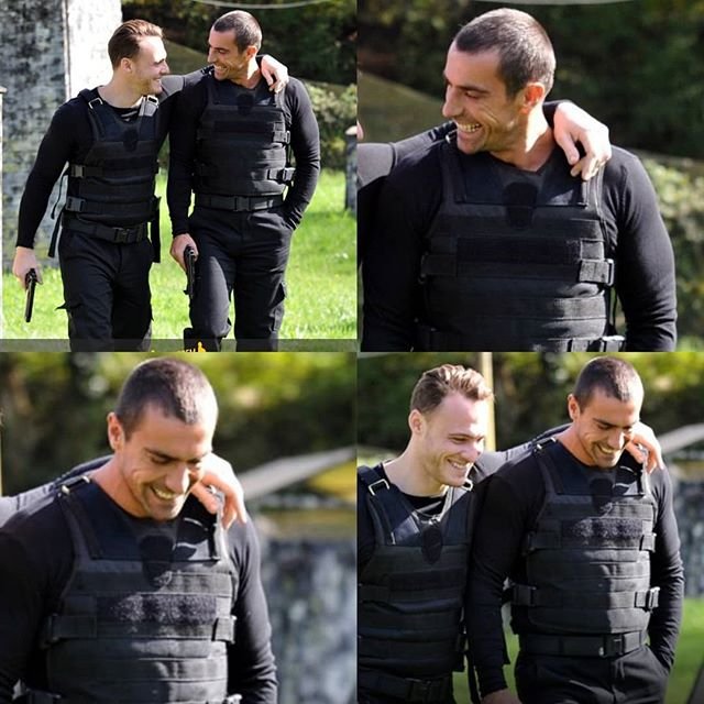С удоволствие ви прочетох, посмях се. Сега ще ви сложа тройна доза мъжки чар. Много хубави и тримата, а пък усмивките им заразяват с настроение. И още веднъж да похваля Ибрахим. Отново е намерил начин да направи героя си различен. Сега е сложил това идиотско изражение на невинно дете, с което се прави на ударен, когато така му изнася. Или с думите на Поли: "Има някаква детинска лудост в този мъжкарски образ, което му придава голям чар." Умирам от кеф с него.