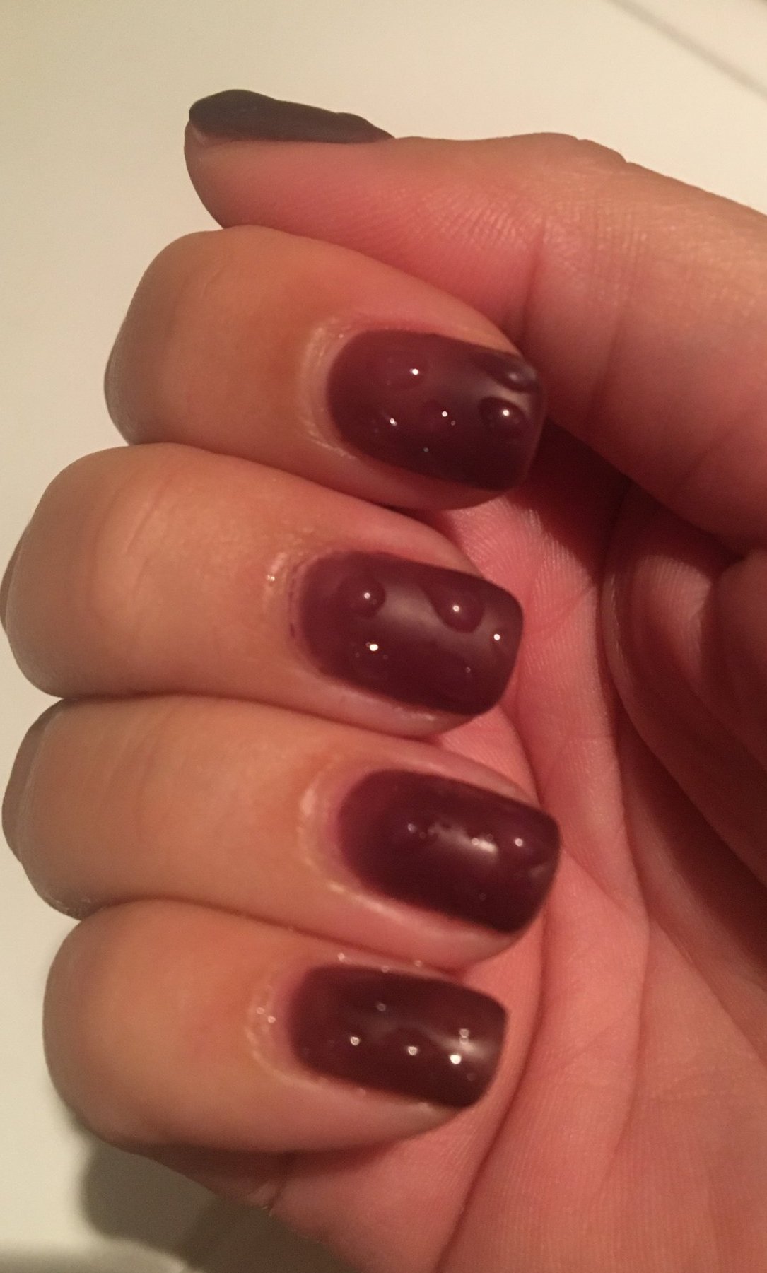 Хехе значи и аз съм в крак с модата,онзи ден си направих матов с капчици,самия лак е термо:
