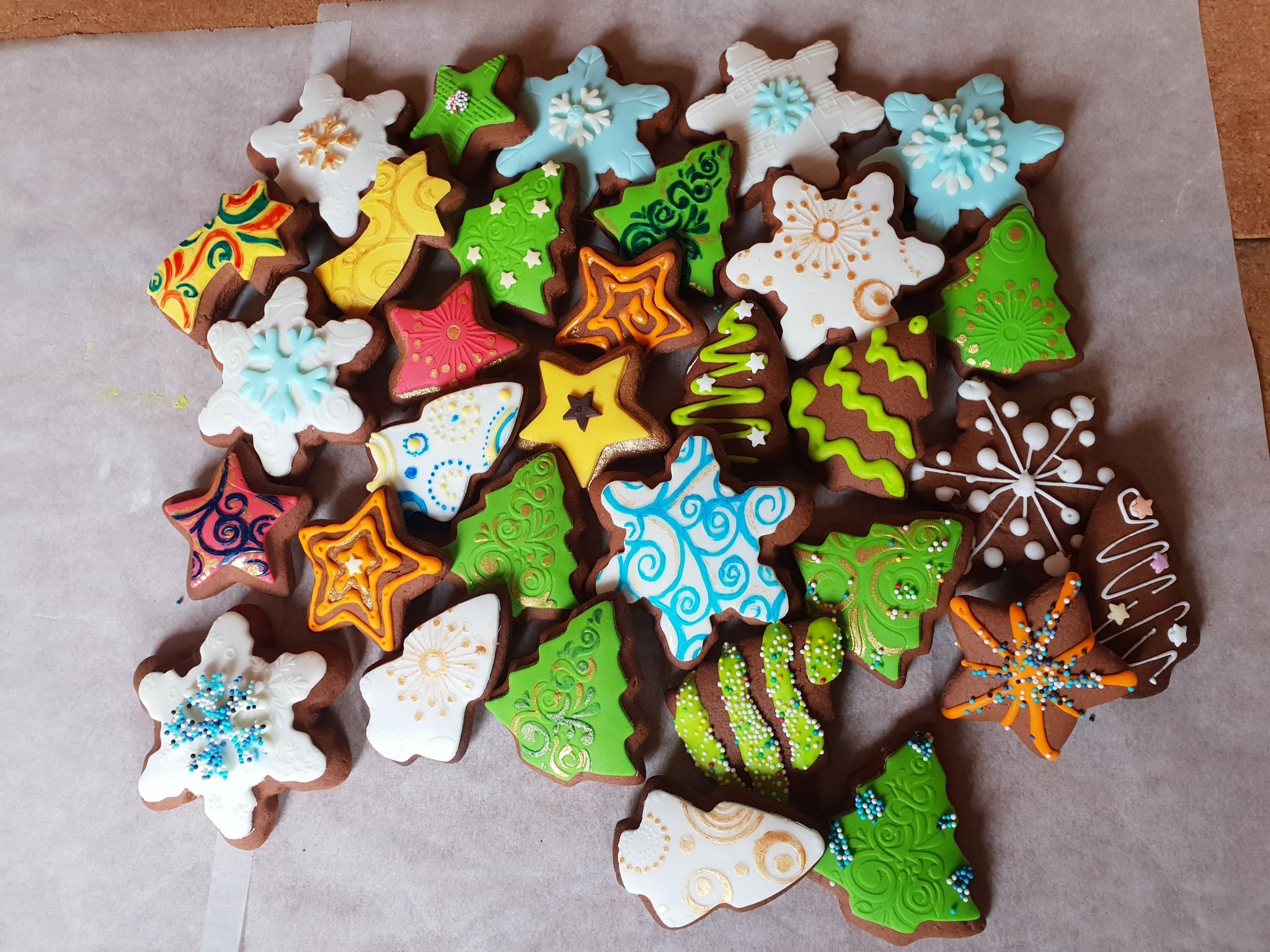 Готова съм вече със сладките за Коледа. Довърших меденките, ето част от тях: