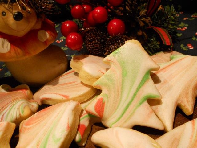 Малко коледни бисквити с  мраморен айсин, по най, най-лесният и достъпен начин за мен, щото съм мързелива и нямам търпение да ги рисувам.